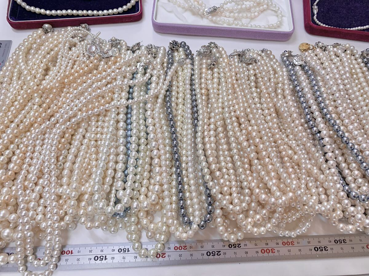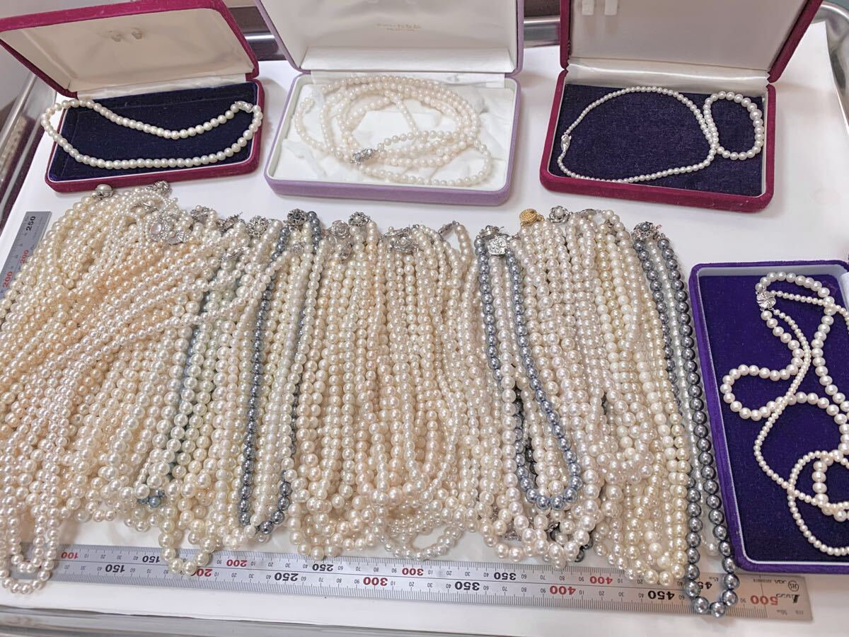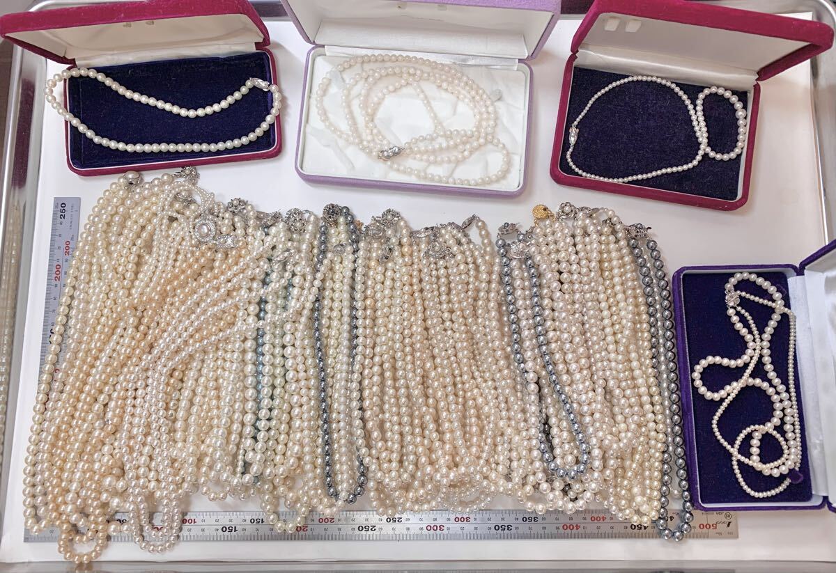 真珠 ネックレス 81本 パール 本真珠 アコヤ真珠 アコヤ 海水パール イミテーション 大量 ブランド まとめ SILVER セット アクセサリー