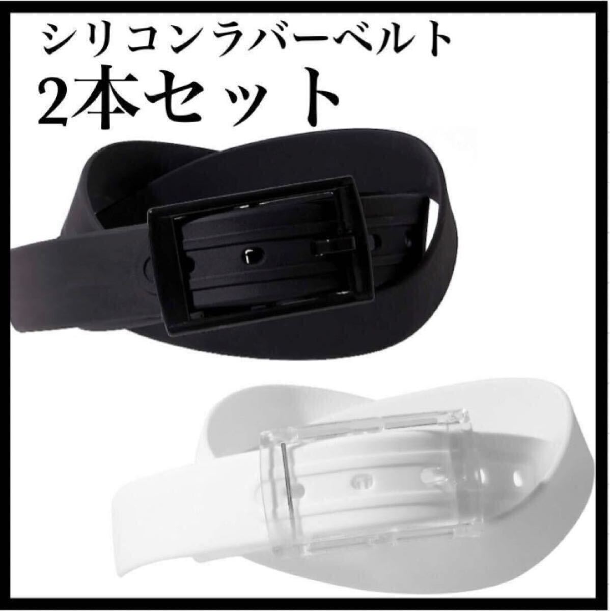 シリコン ラバー ベルト 腰ベルト 2本セット 2色 樹脂製 防水 伸縮 長さ 調節 可能 自由自在 スポーツ カジュアル ゴルフ アウトドア ペア 男女兼用