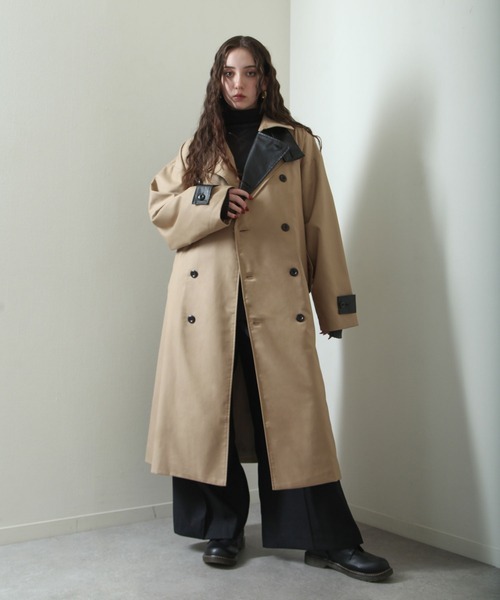 参考商品名:レザー切り替え配色トレンチコート