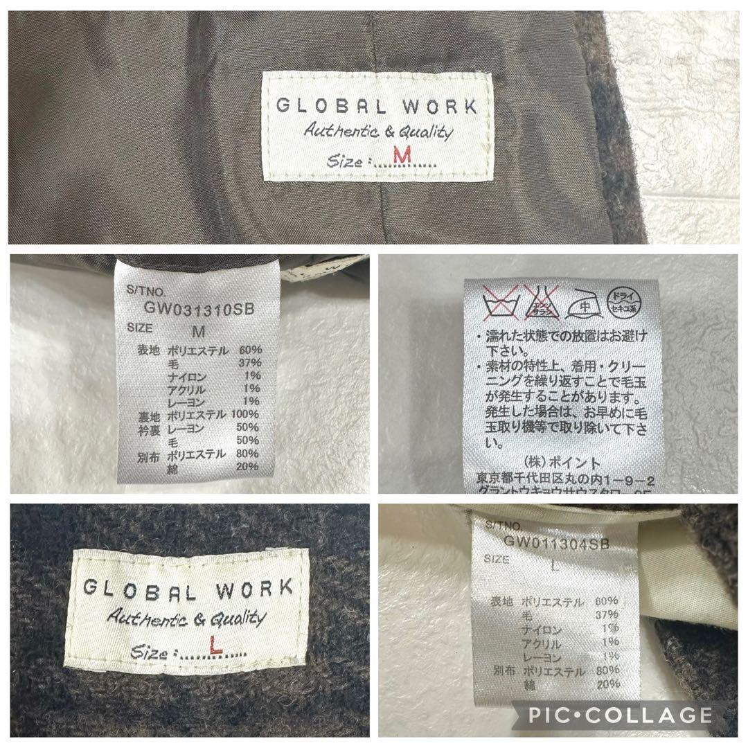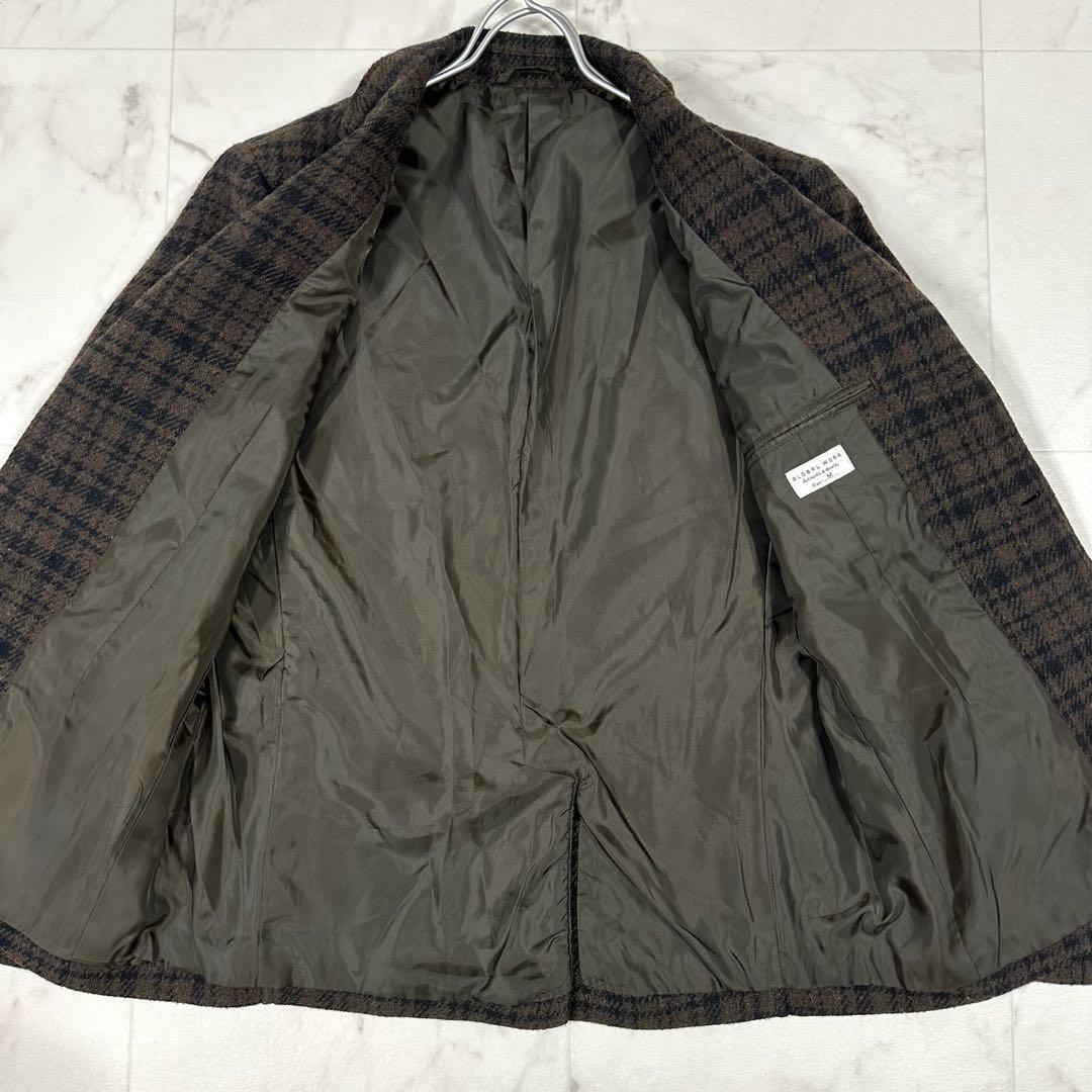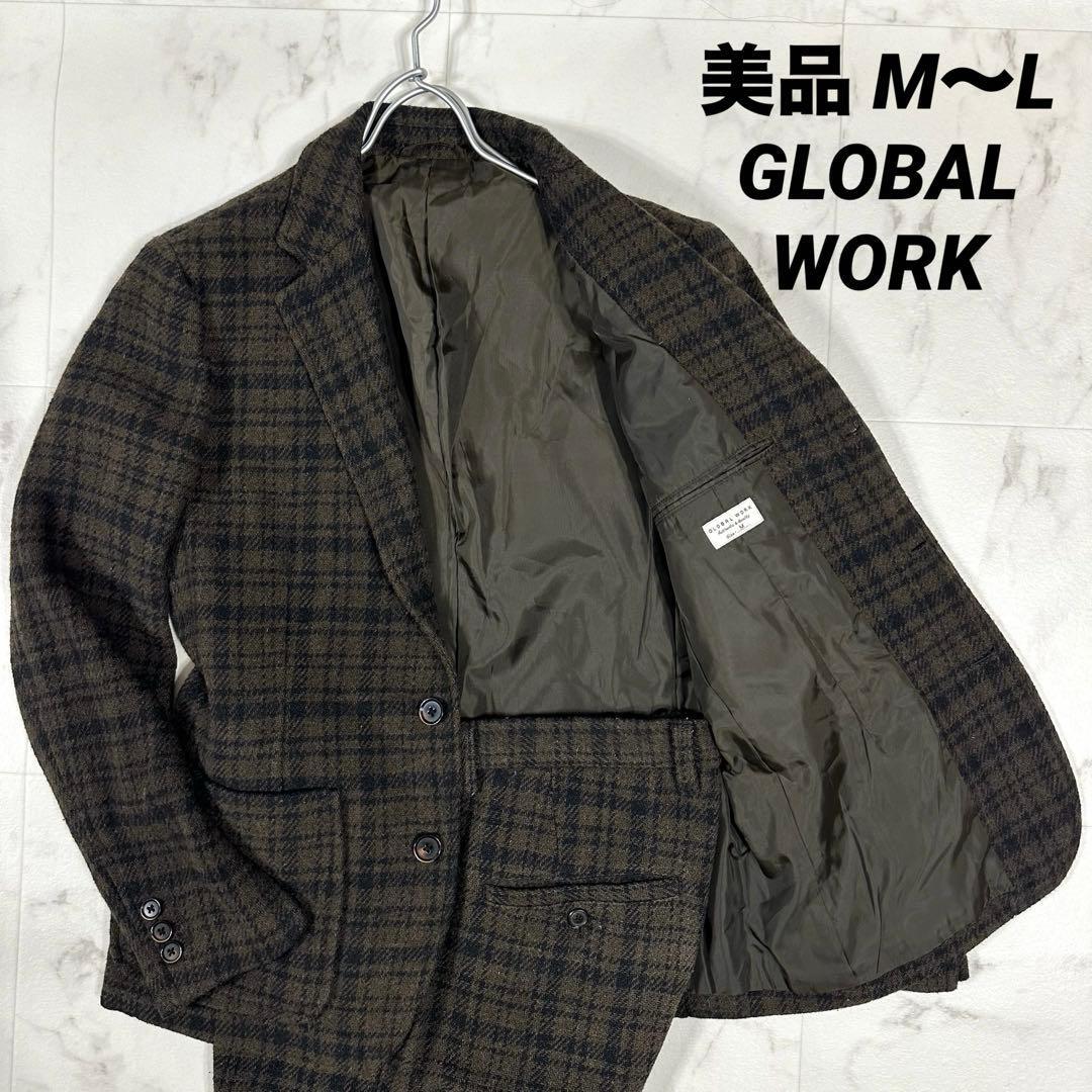 【美品】GLOBAL WORK(グローバルワーク)ウール混チェック テーラードジャケット&スラックス 3ボタン 段返り セットアップ ブラウン系 ジャケットM/パンツL