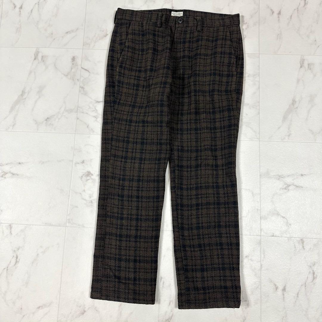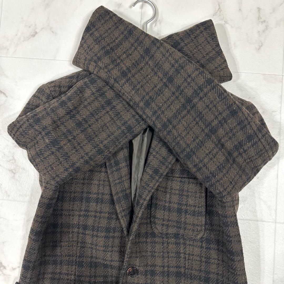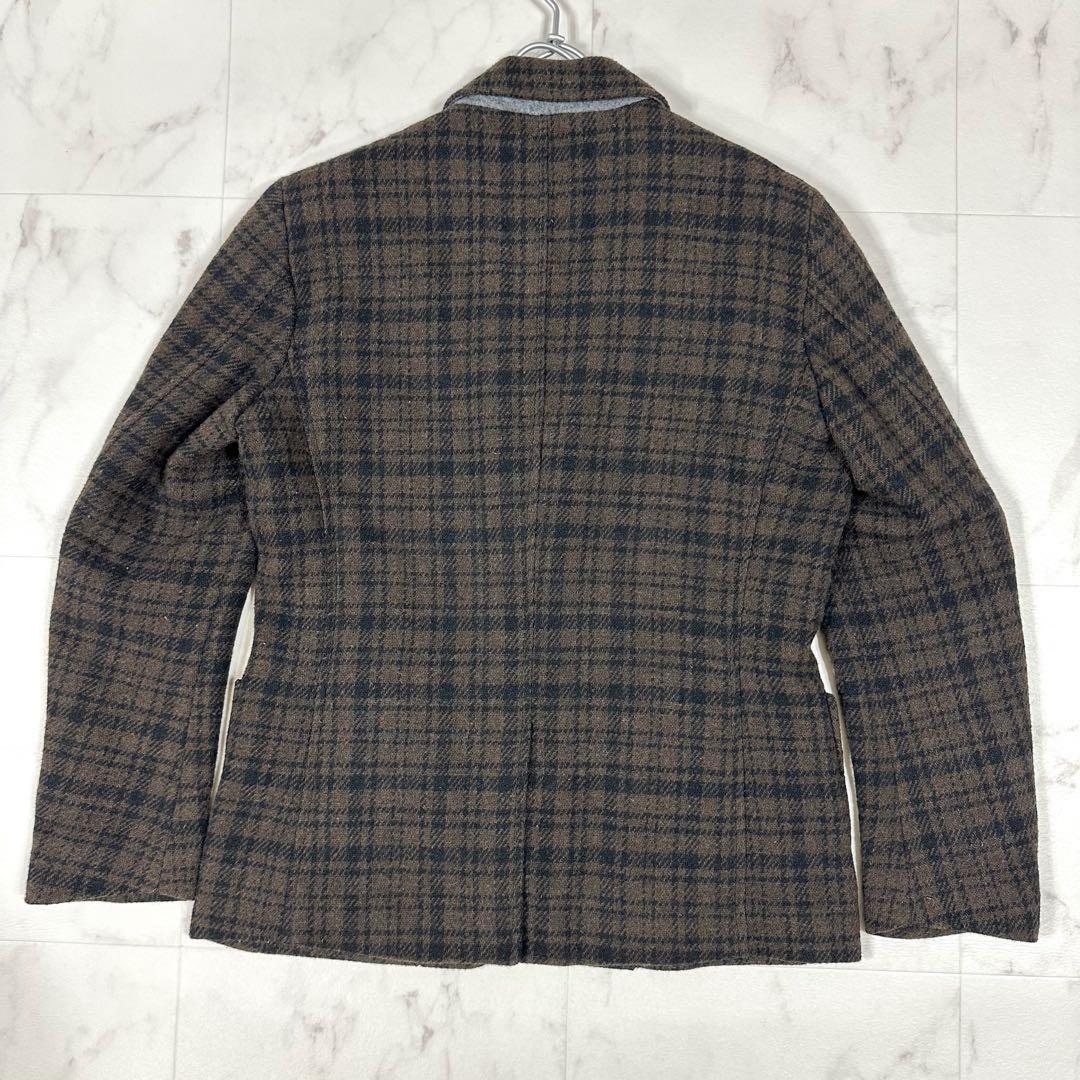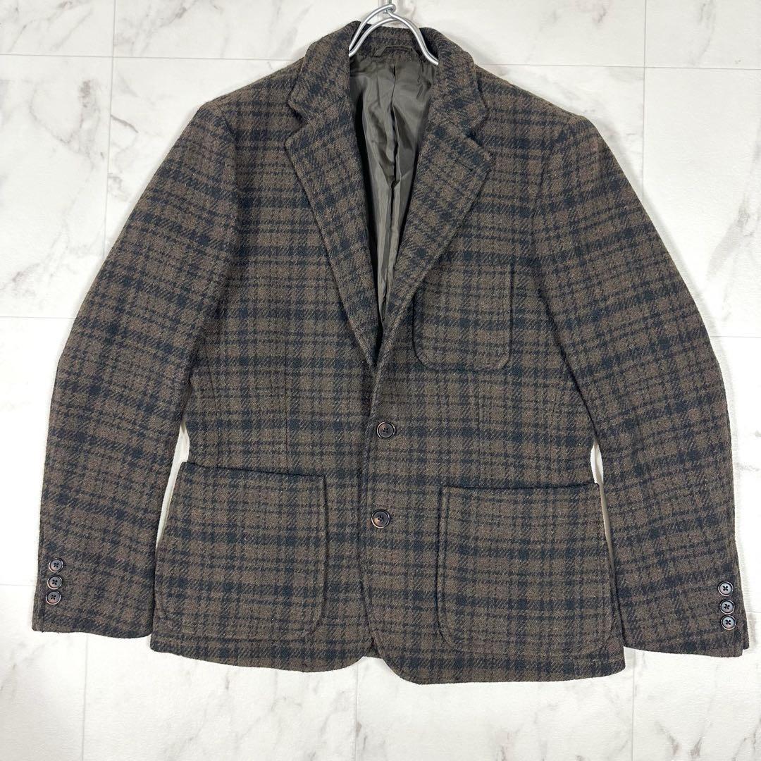 【美品】GLOBAL WORK(グローバルワーク)ウール混チェック テーラードジャケット&スラックス 3ボタン 段返り セットアップ ブラウン系 ジャケットM/パンツL