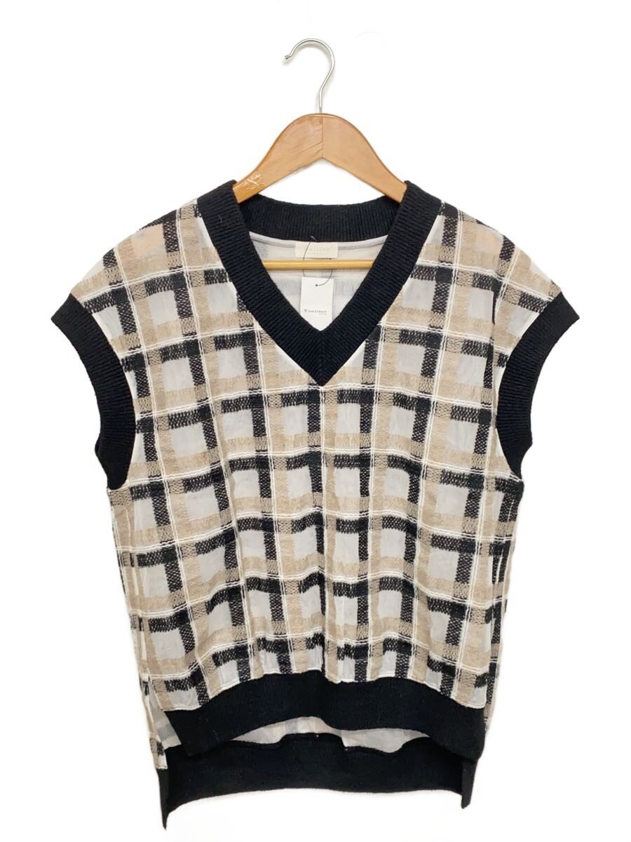 | ヘアリープラッドエンブロイダリーコンビVネックベスト 特筆すべきダメージや汚れはございません。店頭での併売商品ですので、多少商品状態が変化する場合が御座います |