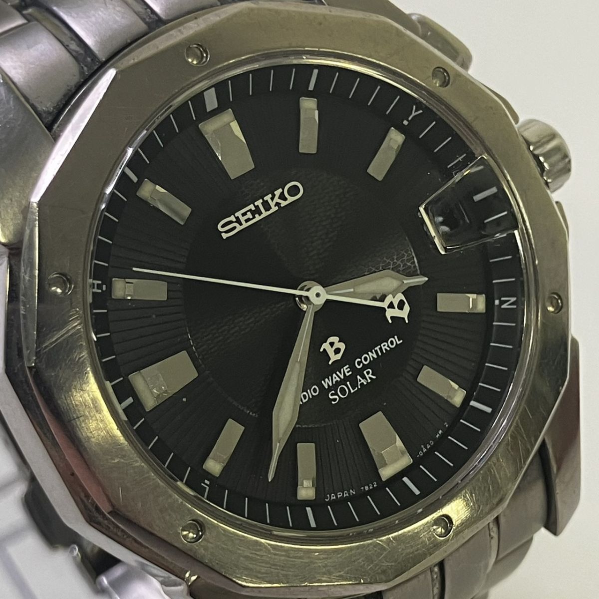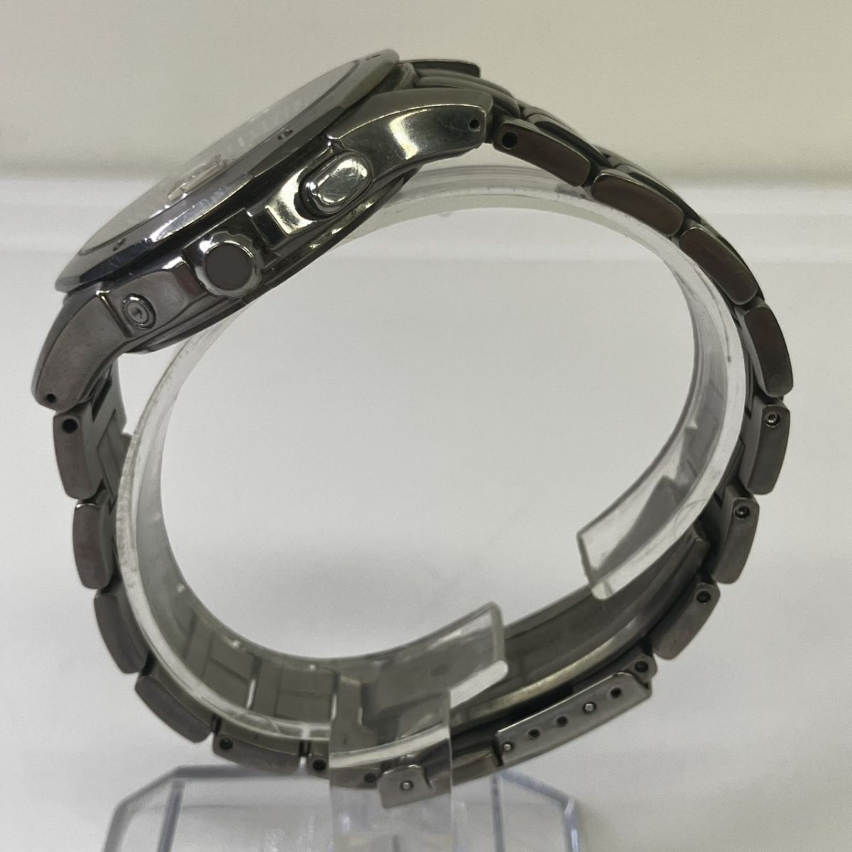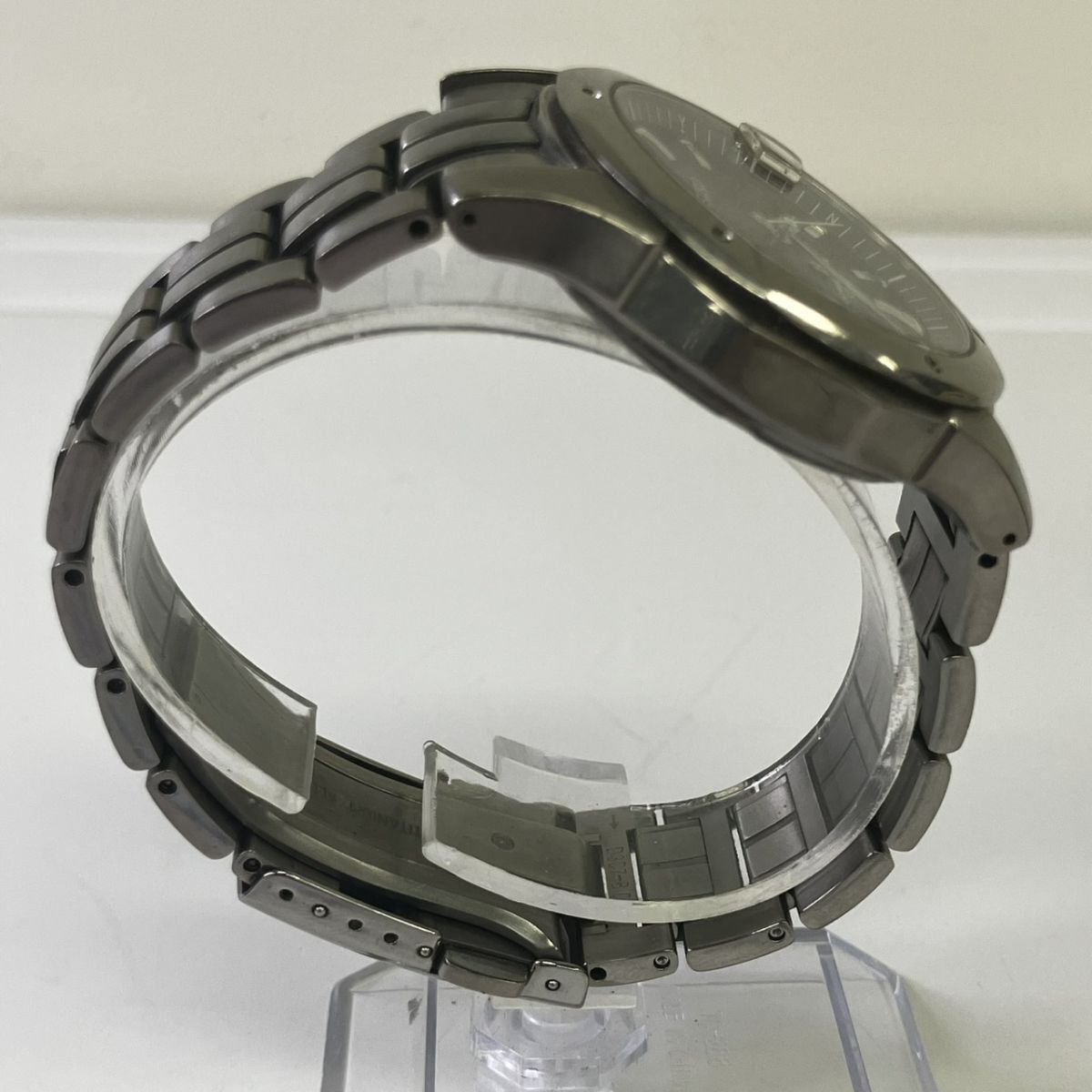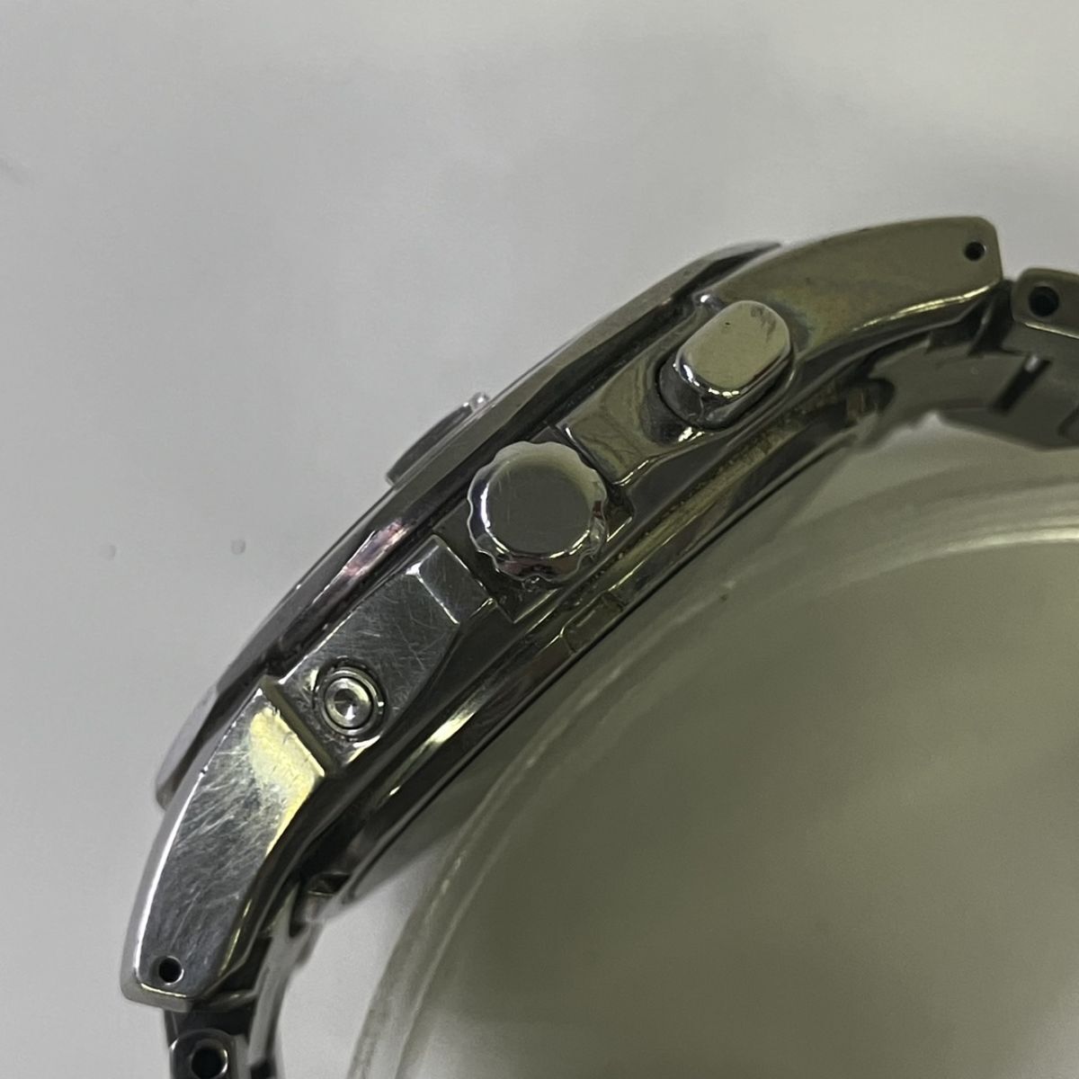 取り扱っている商品は未使用・未開封も含め、全て一度は人の手に渡った一点ものの中古・ジャンク扱いでの商品です。 当方素人ですので肉眼で確認できる簡易的な検品、採寸、および簡易梱包となります。 通電確認済み、動作確認済みの記載のないものは、動作未確認、動作不可の商品となりますので、予めご了承ください。 ※稼働の記載につきましては秒針等の確認のみとなり、全体の動作を保証するものではございません。 また、出品時の中古品の動作状況となりますので、予めご了承の上でご入札ください。 不動の表記につきましてはクォーツ式のムーブメントの場合、動作未確認の状態となります。 電池交換後、不具合があった場合でも返金、返品の対象とはなりませんので、予めご了承くださいますようお願い致します。 細かな日差、オーバーホール状況、社外パーツの使用に関しては保証しかねますので、ご理解いただけた上でのご入札をお願い致します。 上記を踏まえた上で中古品、ジャンク商品として出品させていただいておりますので、全てご理解いただけた上でのご入札をお願いいたします ------------------------------------------------------------------------- 【サイズ】 直径約38mm 腕回り約17.5cm 【付属品】 画像参照 【その他状態】 画像参照 リューズ浮きあり リューズ巻き不可 ------------------------------------------------------------------------- 画像にあるものが全てです。 他詳細は画像にてご判断ください。 ※目立つ傷や汚れを中心に写真を撮っておりますが、画像に写りきっていない傷等がある場合もございます。予めご了承ください。 ※商品を多数出品している関係で、稀に商品説明や画像に誤りがある場合がございます。予めご了承ください。 こちらのページをご覧いただく際は、商品説明文と掲載している画像の全てを確認いただいた上でご入札ください。 | |||||||