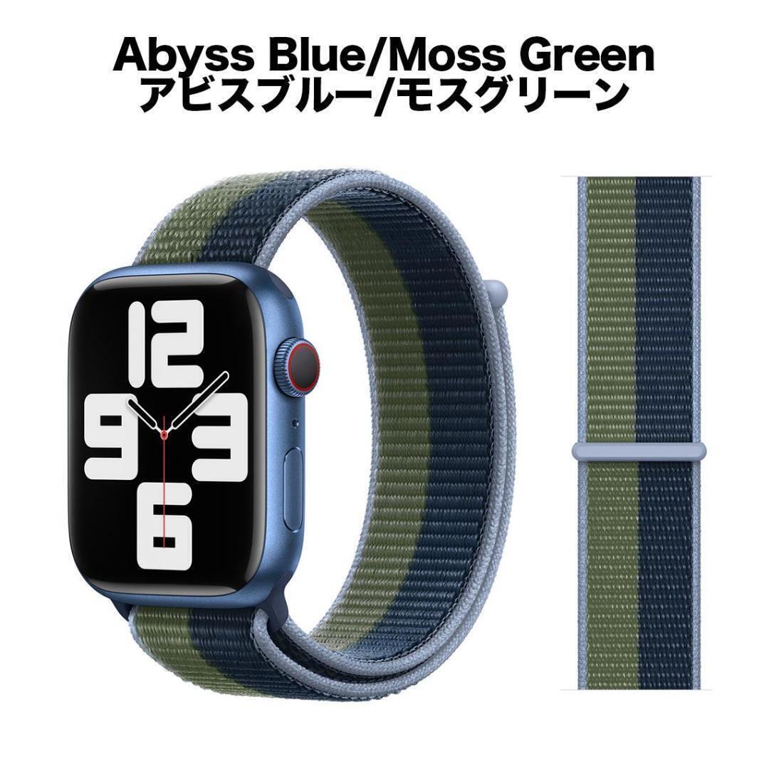【送料込み】NEW 38/40/41mm アップルウォッチ アビスブルー/モスグリーン スポーツループ ナイロン バンドストラップ AppleWatch