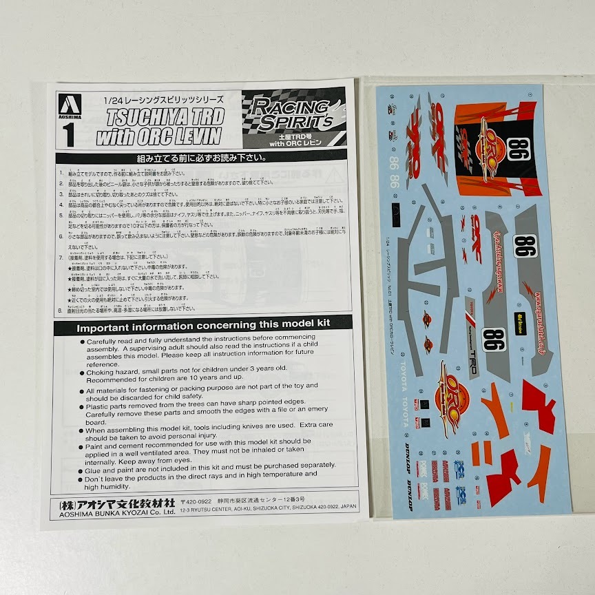 ◆商品名:土屋圭市 1/24 レーシング スピリッツ TSUCHIYA TRD WITH ORC LEVIN アオシマ 未組立
