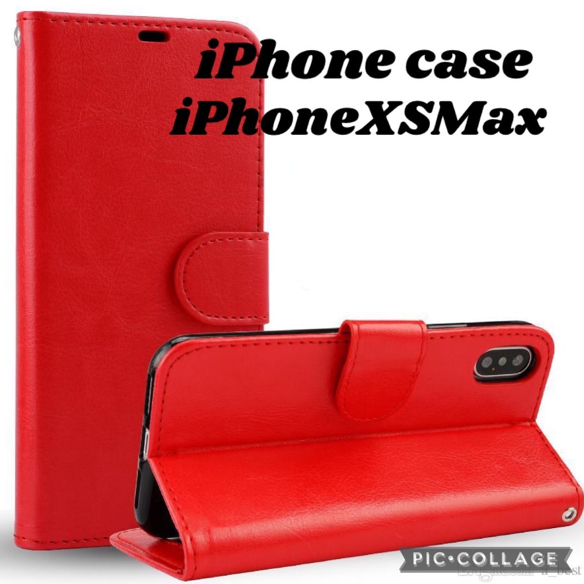 送料無料 スマホケース 手帳型 iPhone XS Max レザー 手帳 本革調 高品質 カード収納 レッド