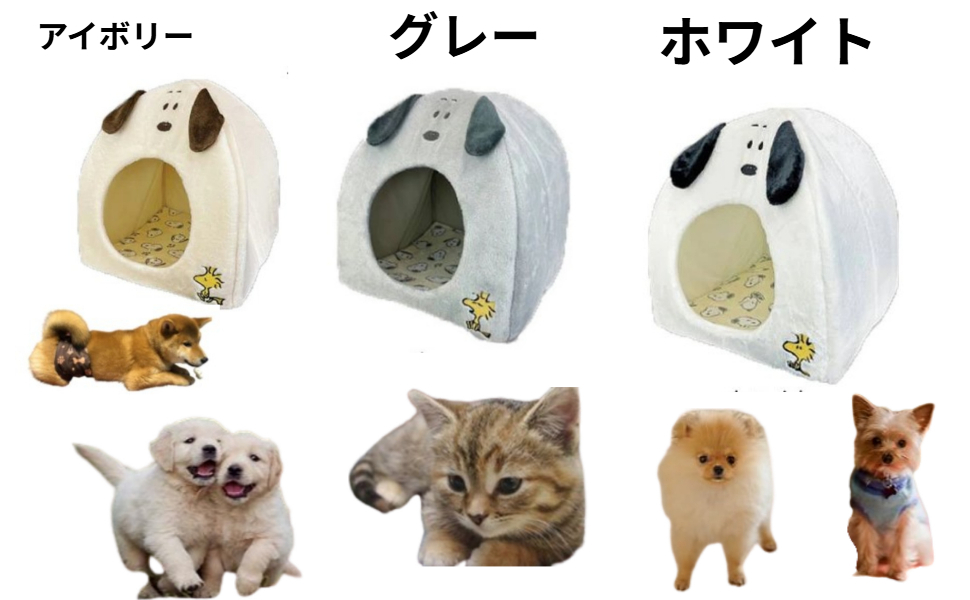 スヌーピー ドーム型ペットハウス犬 猫 おしゃれ 室内 組み立て簡単 小型犬 通年 折りたたみ 軽い 軽量 コンパクト ホワイト アイボリー グレー
