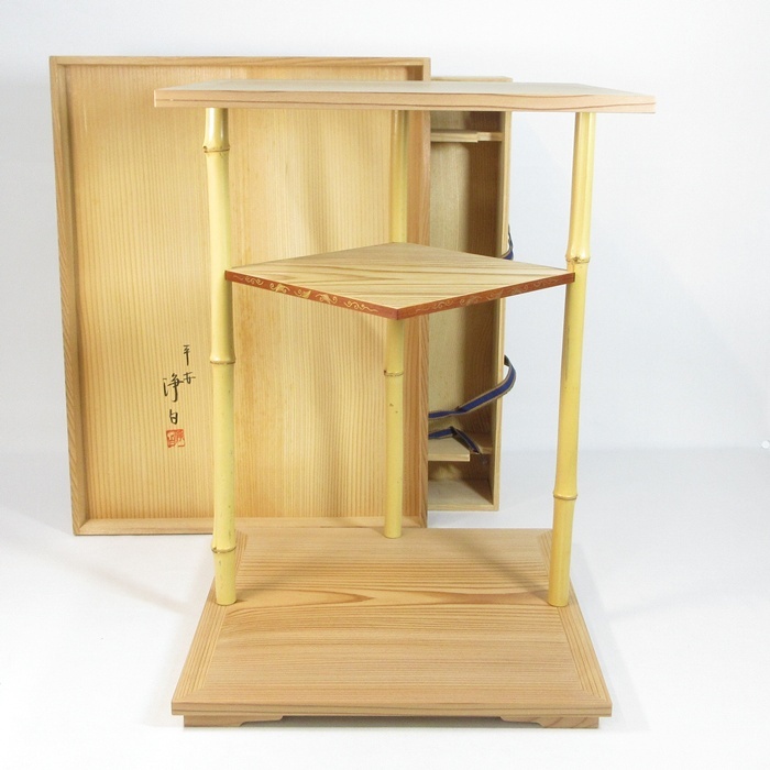 【B0942b】茶道具 棚物 平安 浄白 作 淡々斎好写 折据棚 裏千家 組立式 水指棚 共箱 即決