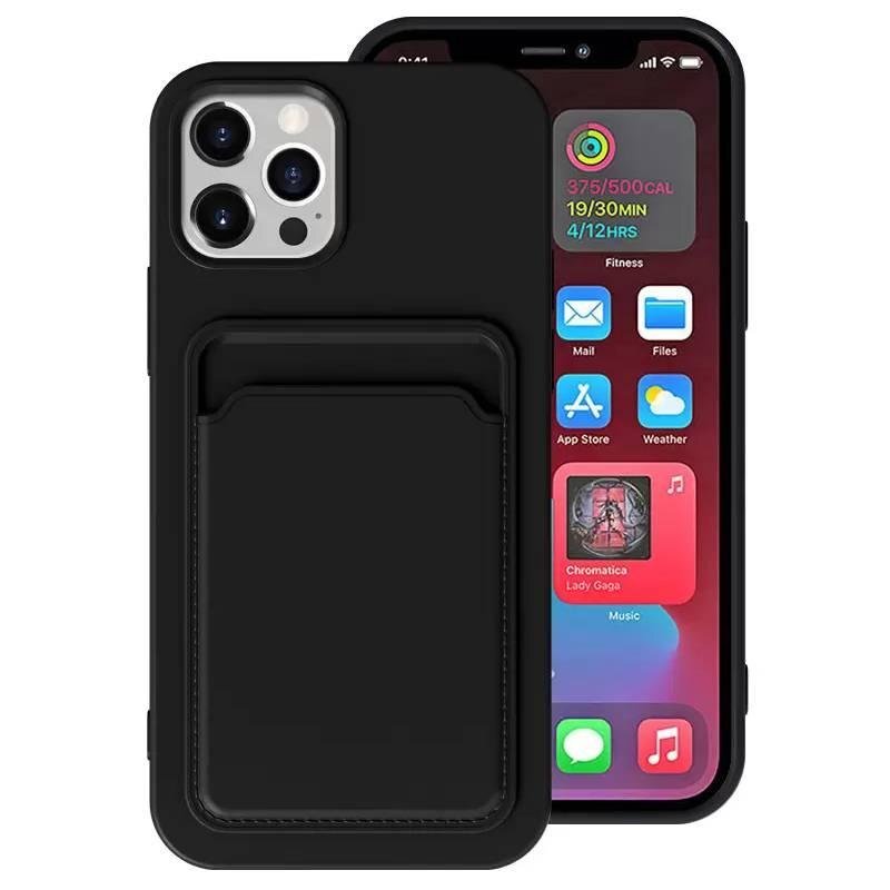 【iPhone16:ブラック】iPhoneケース アイホン 携帯 スマホ カバー シリコン TPU カード収納 背面収納 薄型 B26