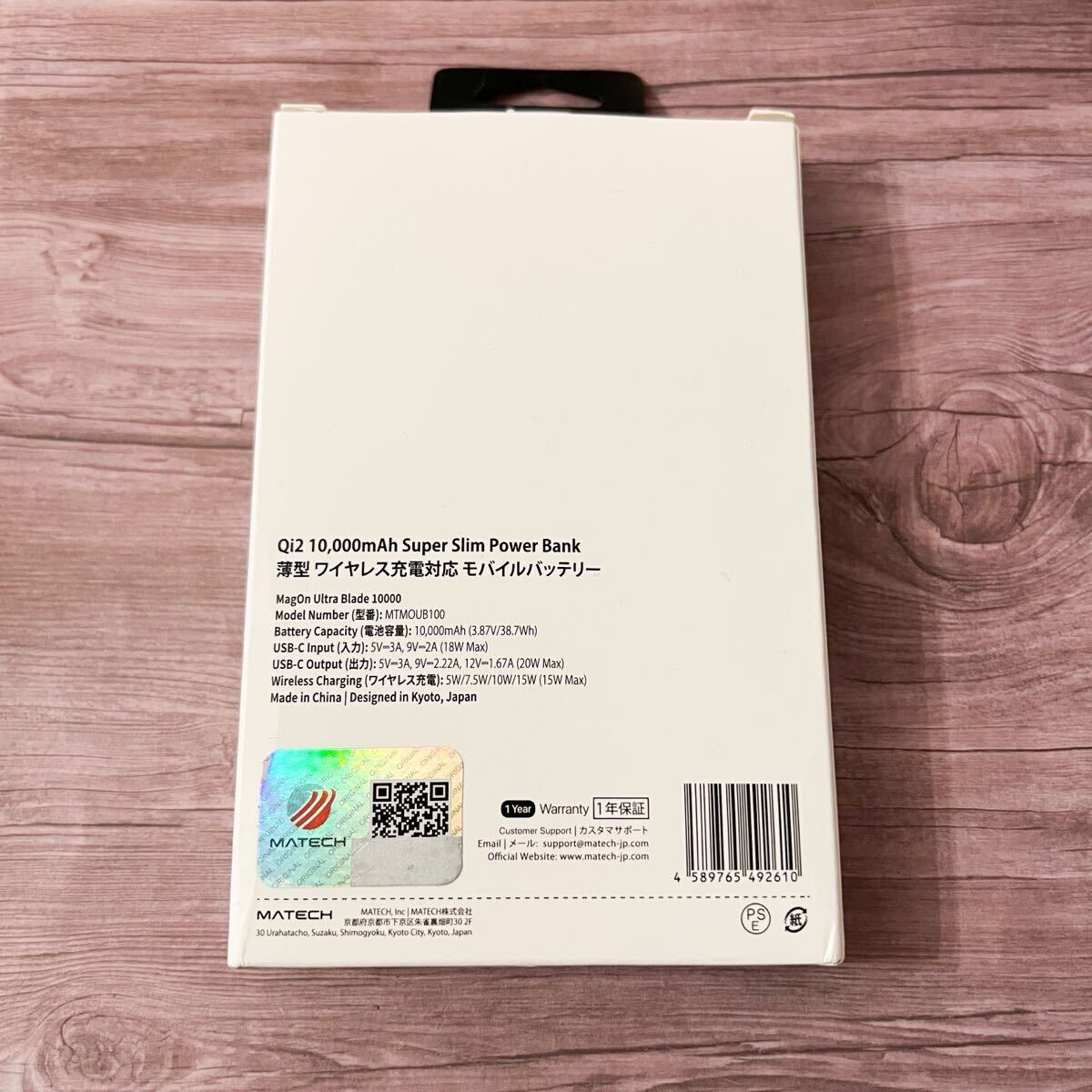 MATECH(マテック) Qi2 モバイルバッテリー マグセーフ薄型 小型 軽量