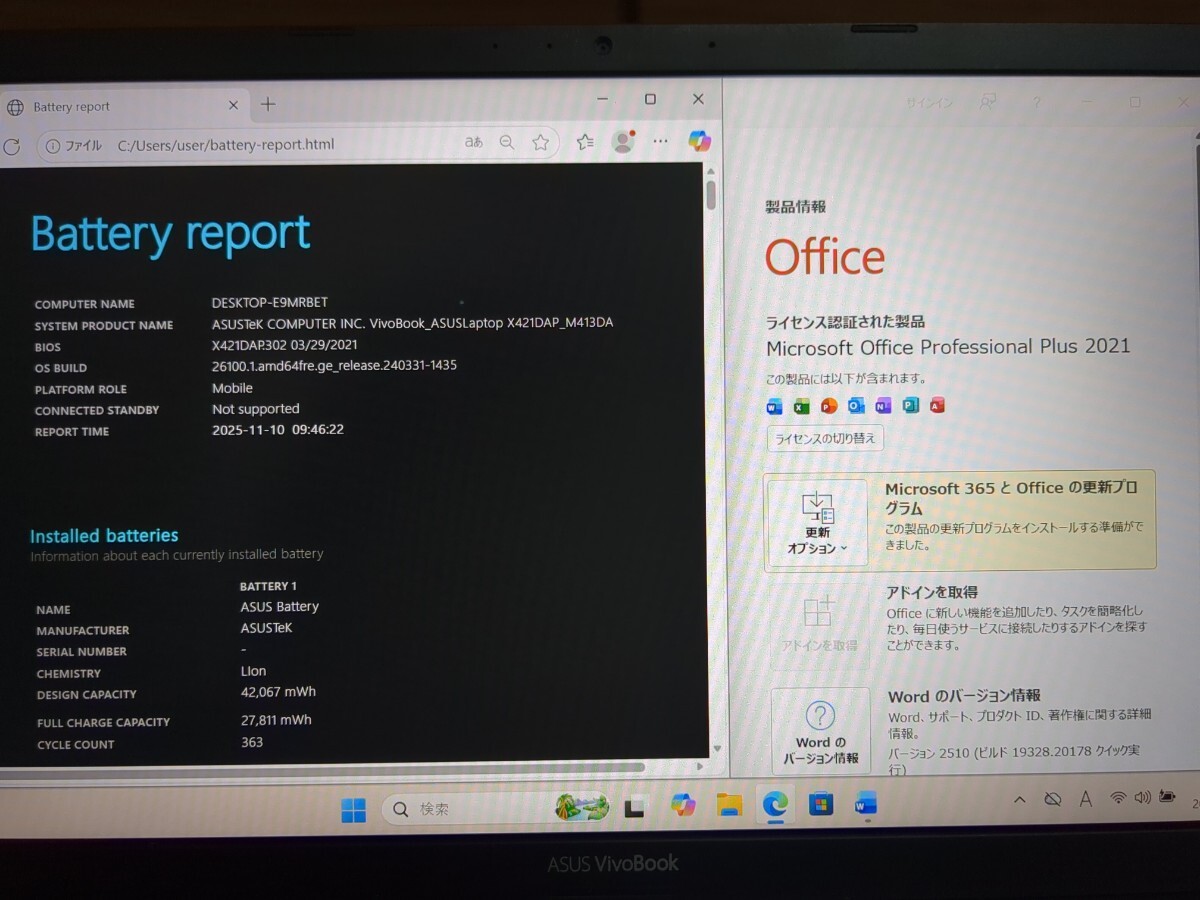 Office2021(認証済)付いておりますので、学生やビジネスに♪