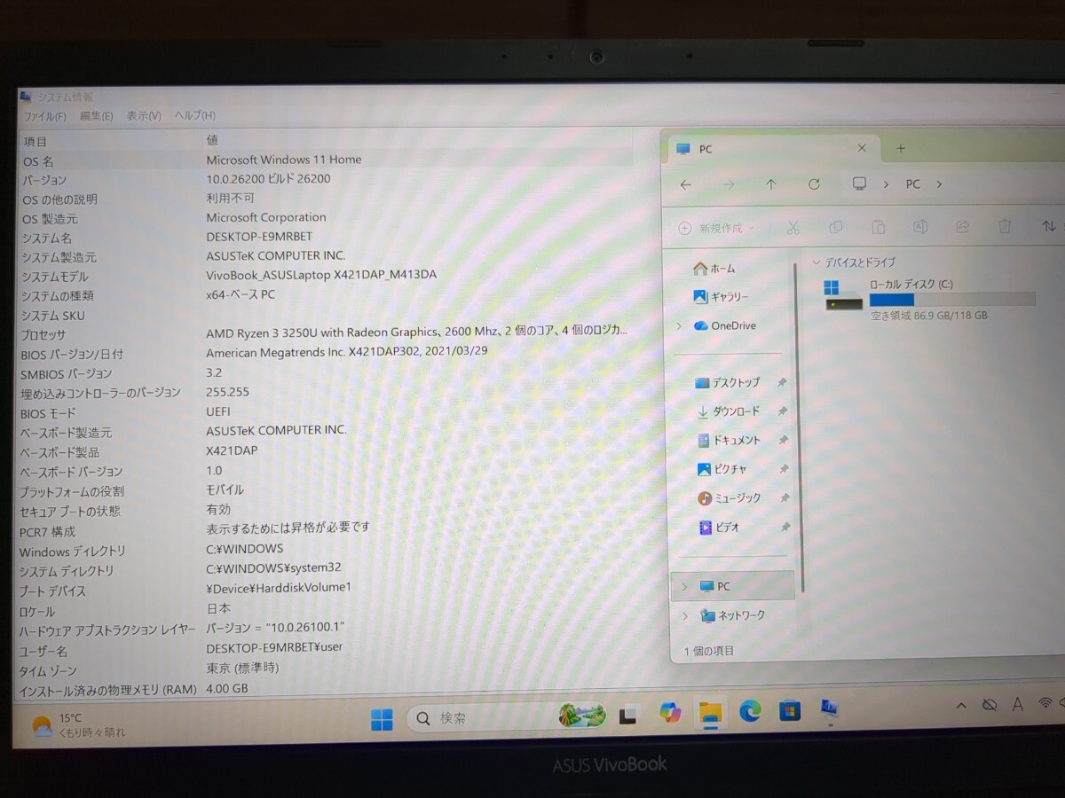 VivoBook 14 M413DA Ryzen 3・4GBメモリ・128GB SSD