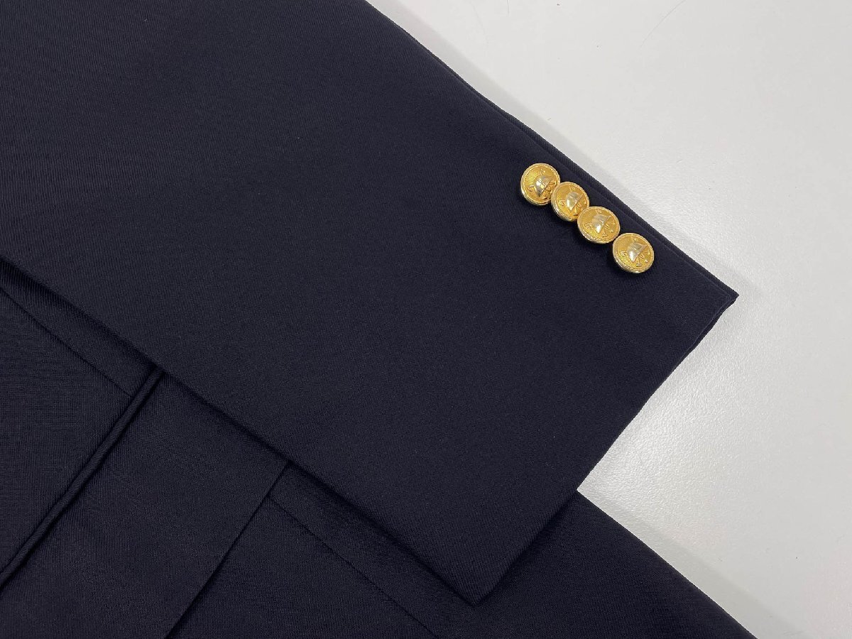 ・フロントはシングル3ボタン、段返りです。金ボタンです。