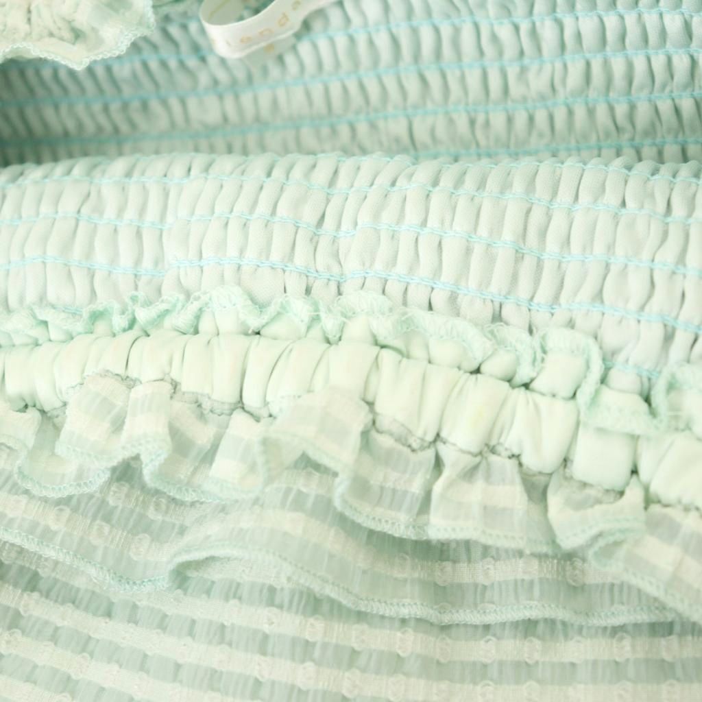 【状態】香水のようなにおい、右肩付近にほつれ、胸周りのゴム部分や裾裏に茶色い汚れがございますが、その他に目立ったダメージはなくまだまだご使用いただける商品です。 ※あくまでも中古品ですので掲載写真や記載内容をご確認いただき、ご理解の上ご購入ください。