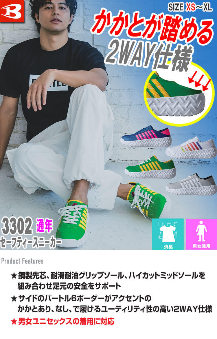 バートル セーフティスニーカー 3302 安全靴 M(25~25.5) 49トリコ