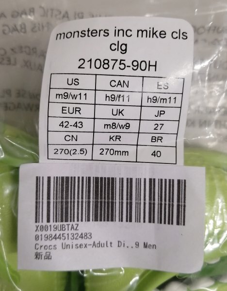 | フリマサイト購入品です。 購入してからそのまま保管していましたが、 パッケージ各所に保管時についた細かい傷やスレなどがあります。 画像1枚目に写っているもので全てです。 状態を保つ為、開封しての中身撮影は行っておりません。 ご依頼を頂いてもご対応致しかねます。 ★★★ 検索用 ★★★ 『Crocs モンスターズインク マイク・ワゾウスキ』 『 』内ワードで検索して頂ければ、商品詳細が確認出来るかと思います。 お使いのネット環境により、現物と画像で色味に相違がある場合があります。 未使用品ですが、一度人の手に渡ったものであることと、販売店からの出品でない為、中古品として出品します。 美品をお求めの方、状態を細かく気にされる方、神経質な方のご入札はご遠慮ください。 素人検品の為、見逃しているダメージ等がある場合があります。 ★バラ売りや商品の一部を処分しての発送は対応しておりません。 | |||
