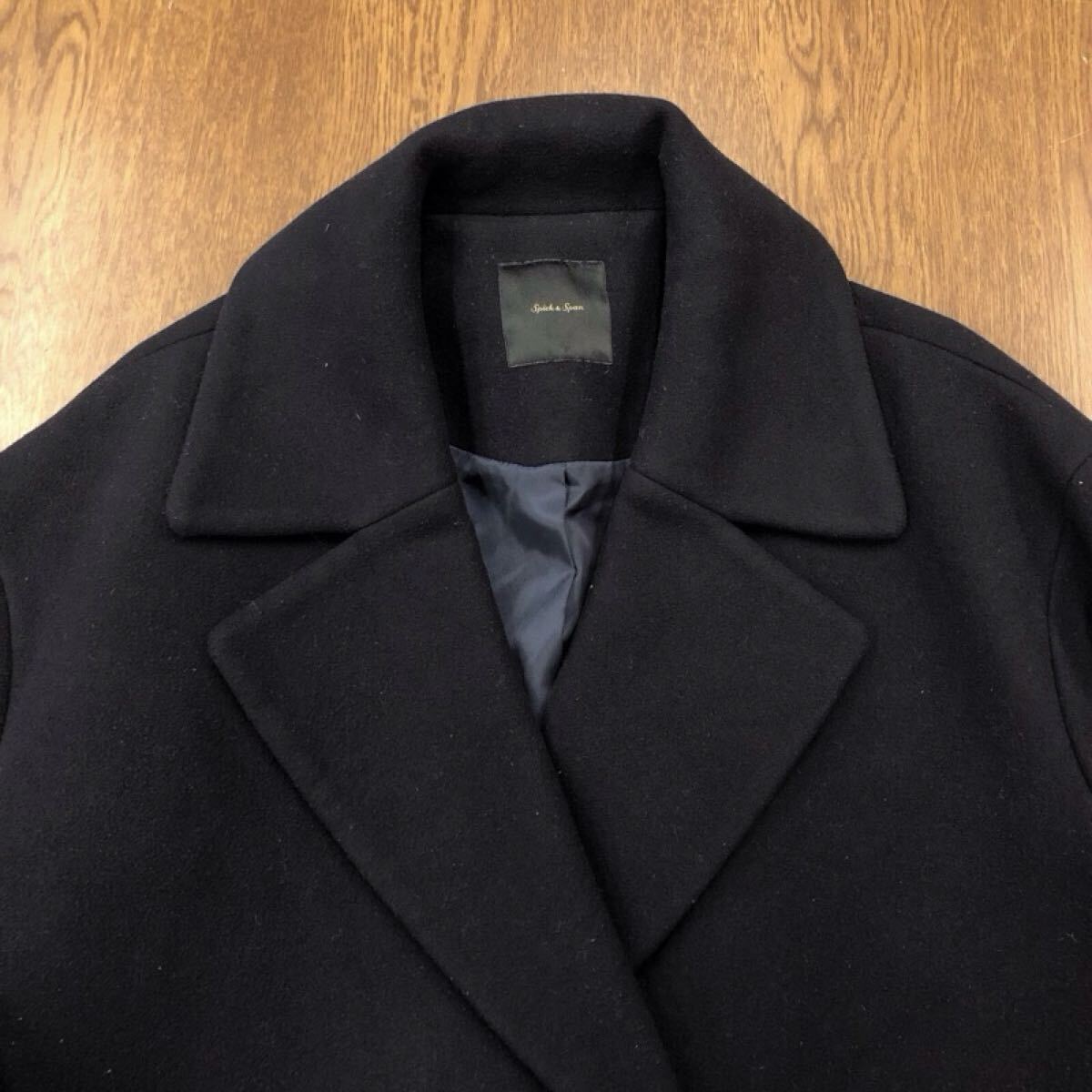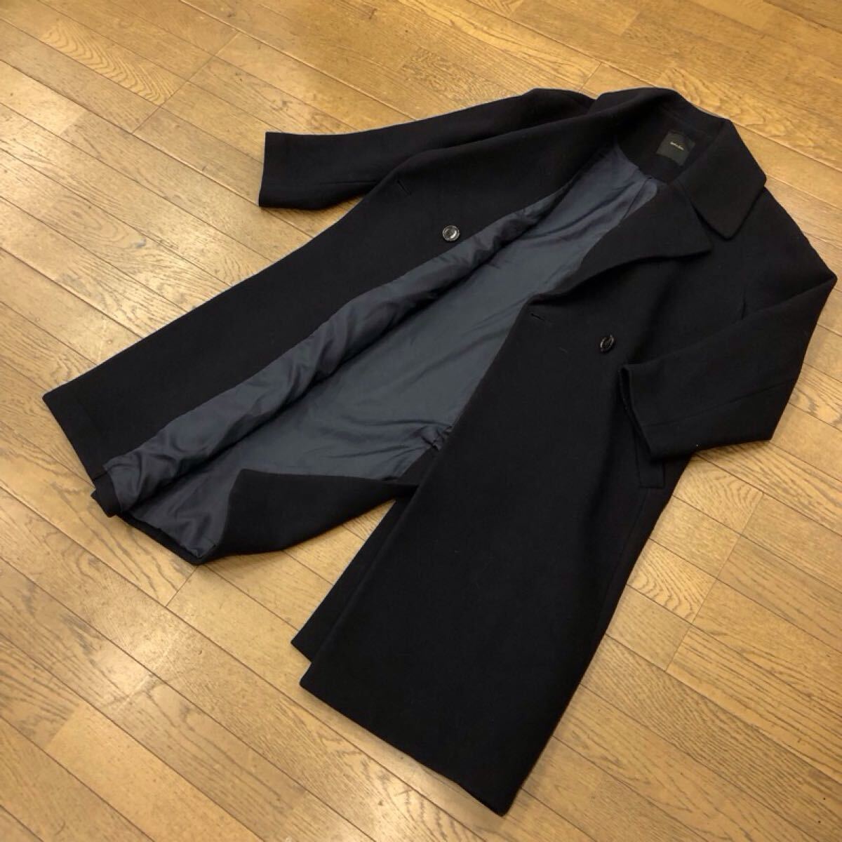 【も007】Spick&Span チェスターウールコート 38 ブラック ロング丈 無地 毛60% レディースブランド古着 スピック&スパン 送料無料