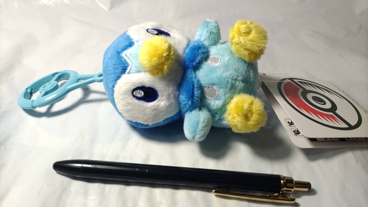 モンスターボール型のカラビナが付いたポッチャマのぬいぐるみです。お好きなところに付けることが出来ます。
