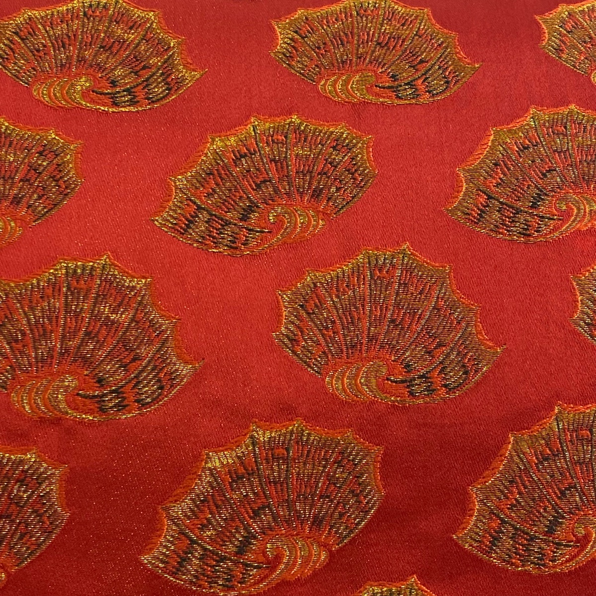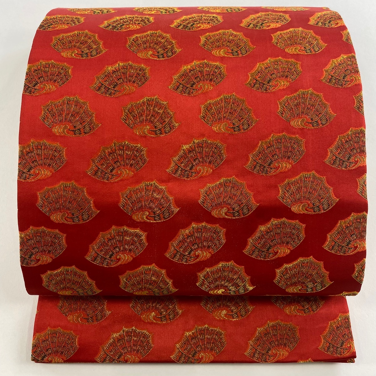 | 開き名古屋帯 美品 名品 龍村美術織物 彩貝 金糸 赤 正絹 【中古】 |