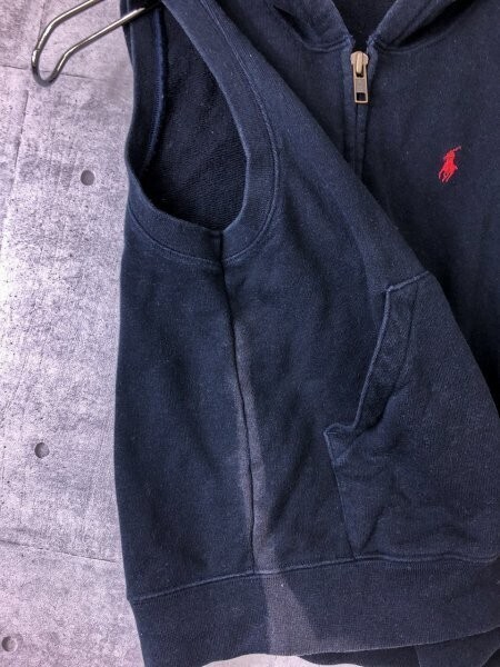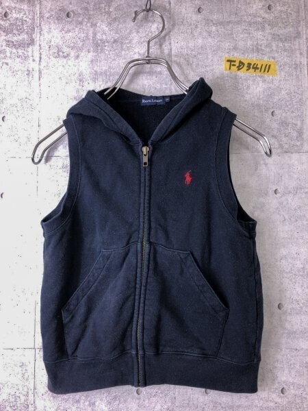 RALPH LAUREN ラルフローレン キッズ ワンポイント刺繍 スウェット フード付き ベスト 日本製 120 紺 です。