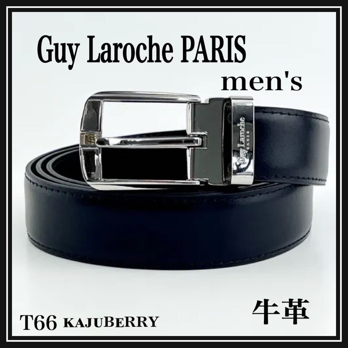 【B級品】 新品未使用 Guy Laroche PARIS ベルト レザー ブラック 黒 BLACK T66 メンズペルト