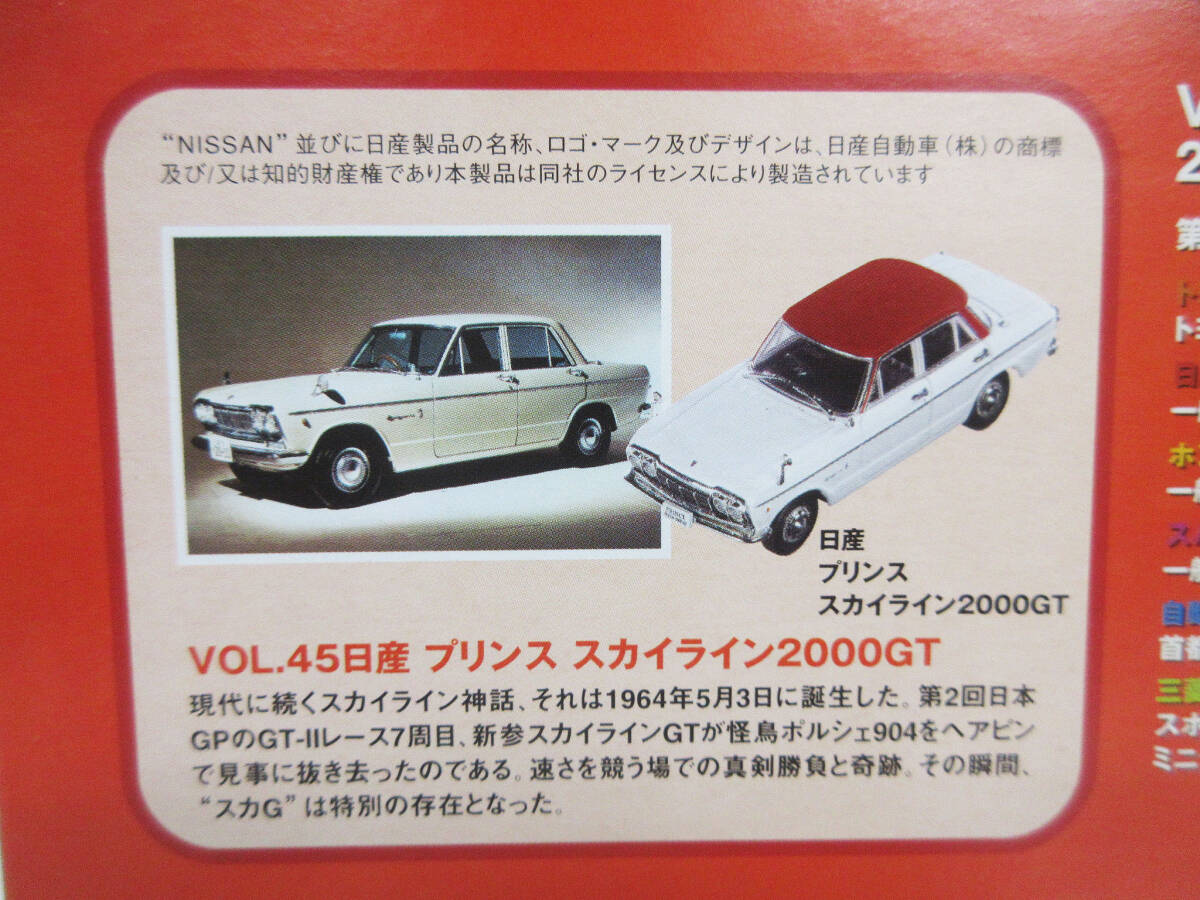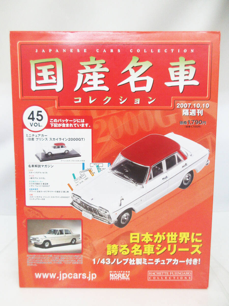 F1346【ミニチュアカー】アシェット 国産名車コレクション Vol.45 日産 プリンス スカイライン 2000GT 1/43★ケース マガジン 付属★未開封