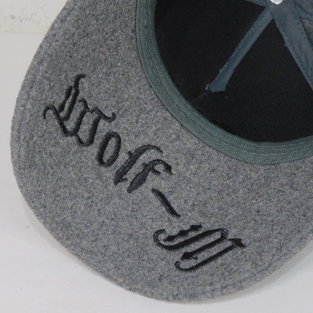 庇の裏の大柄ロゴと後部のオオカミの刺繍が前面は大きい飾り文字の刺繍がされています。