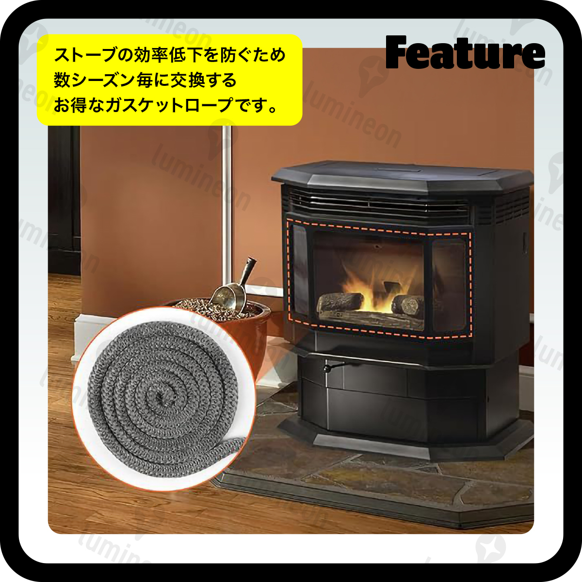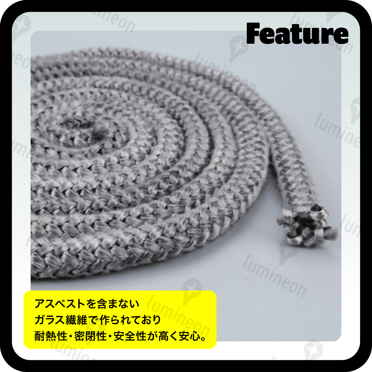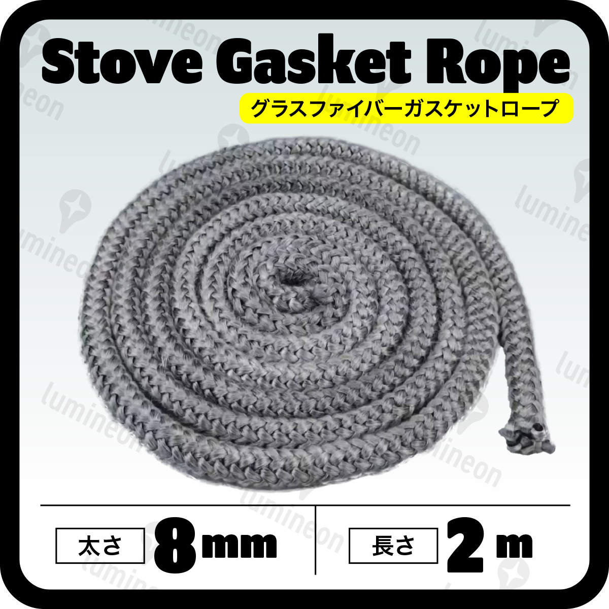 グラスファイバー ガスケット ロープ 8mm×2m ガラス繊維 薪 ストーブ アクセサリー 暖炉 気密性 メンテナンス ガラス 繊維 耐熱 g327c