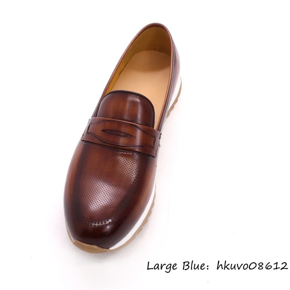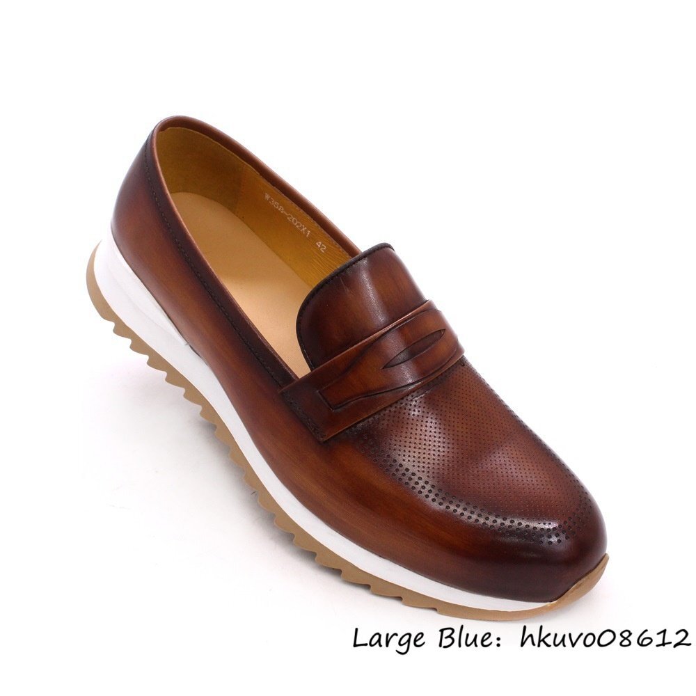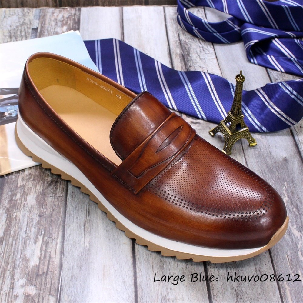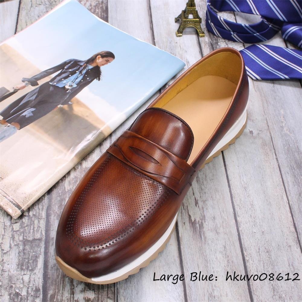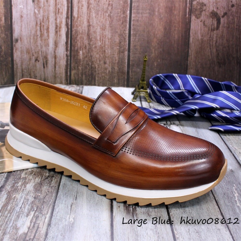 定価9万*超希少 ローファー スリッポン 高級牛革 通気性 職人手作り レザーシューズ 本革 紳士靴 イギリス風 身長アップ カジュアル 24.5cm