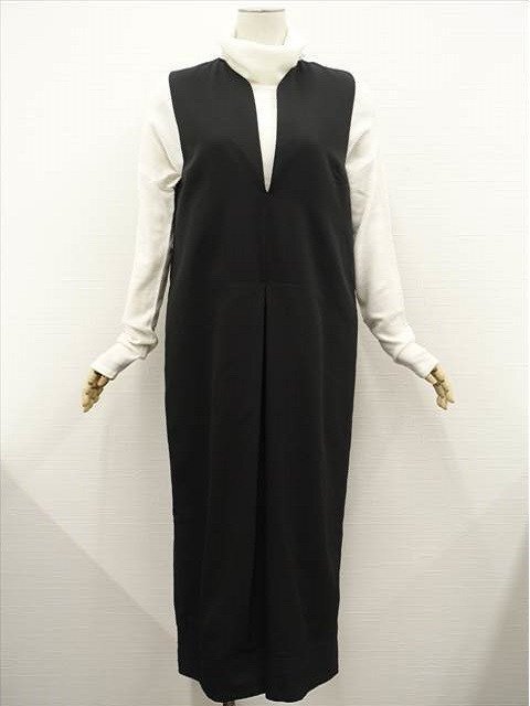 洗えるオールインワン+長袖タートルニットプルオーバー コーディネート2点セット S相当 ブラック/オフホワイト シンプル系 20代・30代・40代