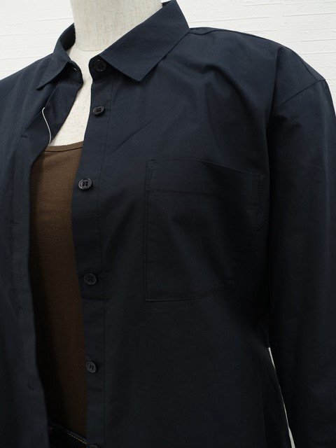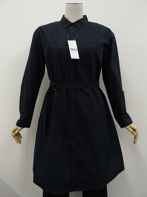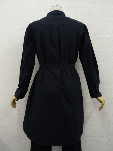 洗えるひざ丈 長袖 ベルトシャツドレス S ブラック 【メール便可】