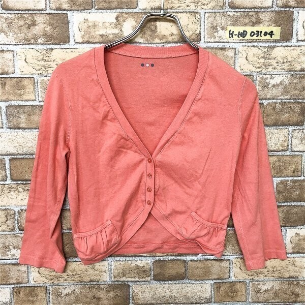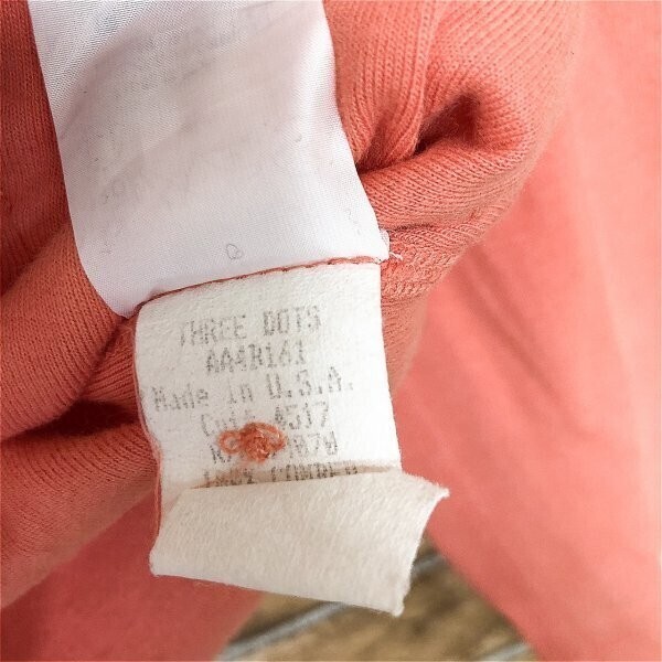 THREEDOTS スリードッツ レディース USA 綿 コットン Vネック 七分袖 小さめ ニット カーディガン サーモンピンク