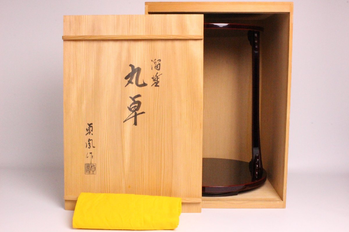浜崎貞鳳 作 輪島塗 留漆 丸卓「共箱・共布」