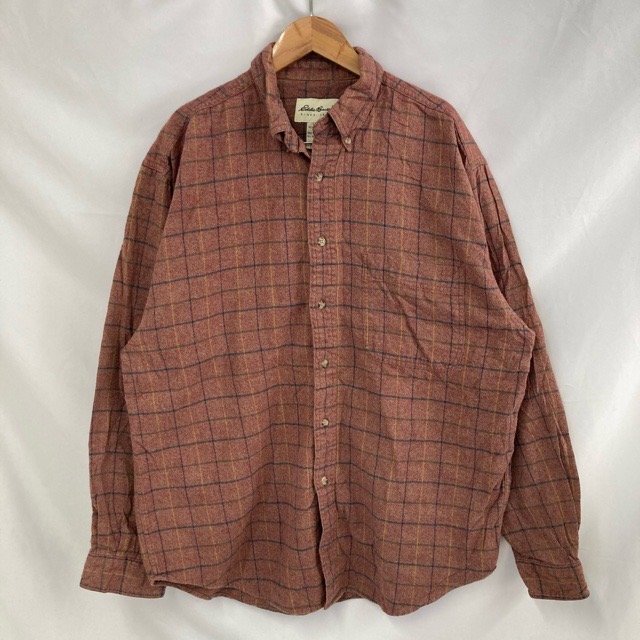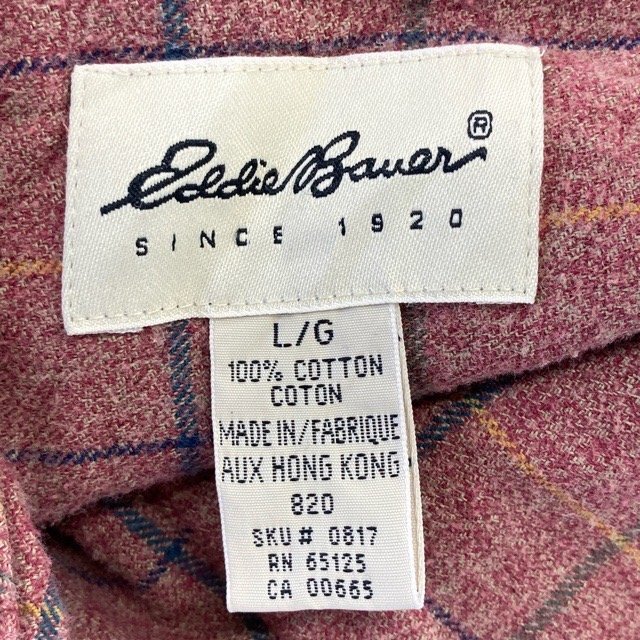 C858 エディーバウアー L アメリカ古着 コットン 長袖 チェックシャツ ピンク Eddie Bauer メンズ