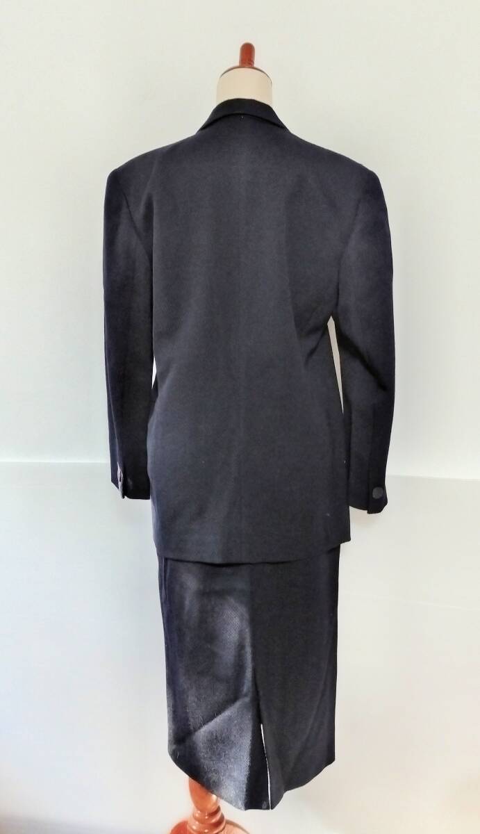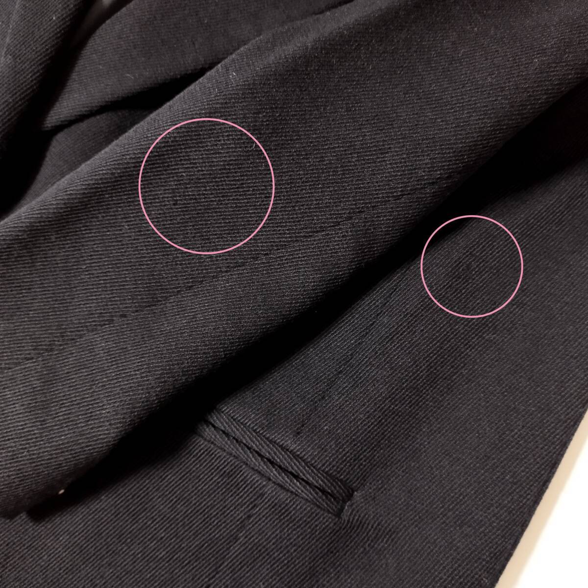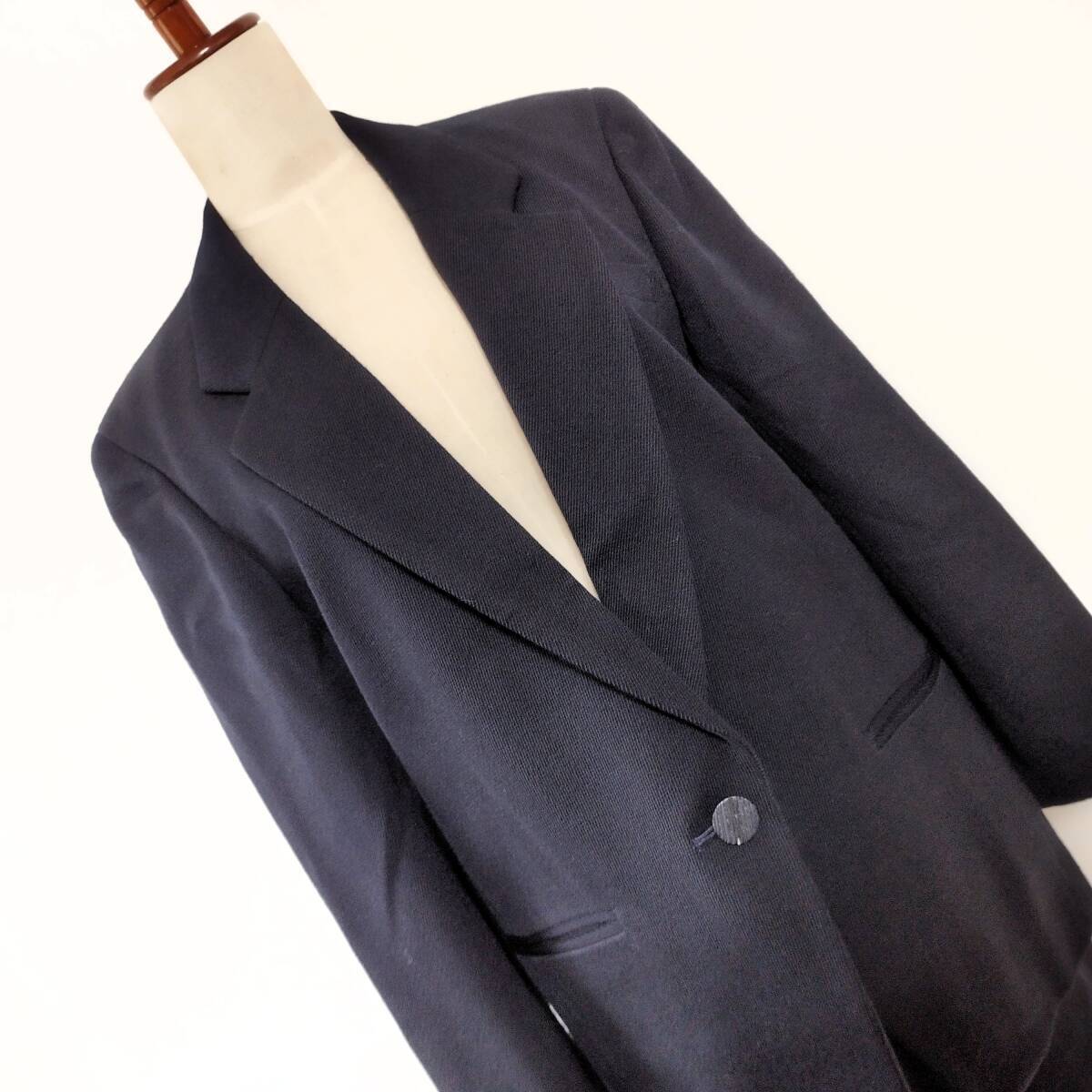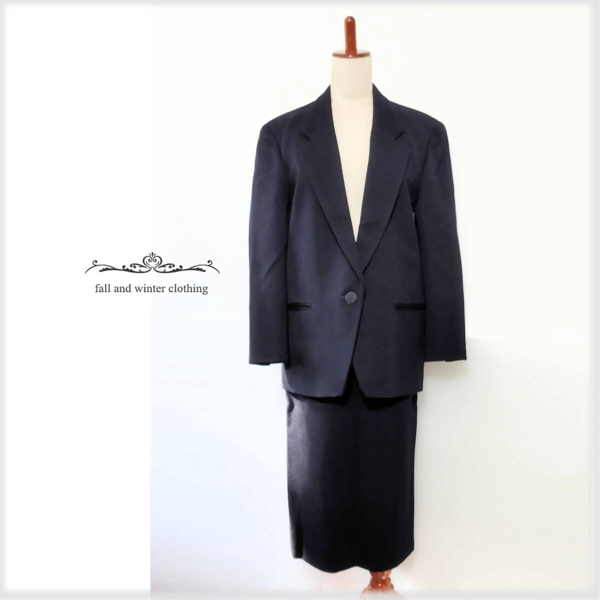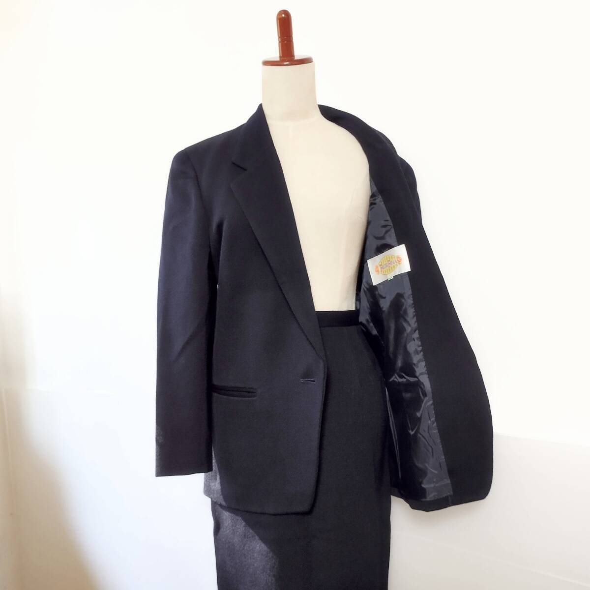 * FLOR FINA * バーバリーやマッキントッシュを取り扱っていた三陽商会さん(C-TK83)の ブランドのスーツです。(* ´ ∇ ` * ) ウール100%の上質なツイル素材を使用しています。 深いテーラードカラーにタイトなロングスカートを合わせていて すっきりとした縦長シルエットになります。 肩パット付きです。 ◇ コンディション USED保管品です。ドライクリーニング済みで、クリーニング札が しつけ糸で縫い付けられています。 タンスの匂いが多少あります。 身頃の左サイドと左腕下付近に 糸の飛び出しが若干あり、 ボタンに小キズがございますが、ほか、衿周りやお袖口なども含め 特に目立つ汚れやシミなどのダメージはなく、 状態は良好かと思います♪ ※ 個人保管品ですので、ご理解ある方のみお願い致します。 ◇ カラー ・・・ ネイビー 濃紺系 ※変色のように見える箇所は光の加減です。 ◇ 素 材 ・・・ 画像の品質表示ラベルでご確認下さい。裏地:ポリエステル ◇ 裏 地 ・・・ 総裏 あり ◇ 仕 様 ・・・ ジャケットは肩パット付き、2ポケット付き スカートはバックファスナー、バックスリット付き。 ◇ 公式サイズ ・・・ 09A3 9号ほどかと。 ◇ 平置き実寸はおよそ下記の通りです。(センチ単位) 【 ジャケット 】 肩幅:43 身幅:51 着丈:70 袖丈:57 【 スカート 】 ウエスト:32 弱 総丈(肩上~裾までを計測):74 ヒップ(およその位置):45 ☆ コーデに使用した他アイテム・アクセサリー類は付属しません…☆ *^^* ☆ 個人保管品ですので小さな見落としの際にはご容赦下さい。 「そんなの、全然いいさ♪」というおおらかな方のみ、ご入札をお願い致します…☆ 。。。。。。。。。。。。。。。。。。。。。。。。。。。。。。。。。。。。。。。。。。。。。。。。。。。。。。 ★ その他、洋服・クツ・雑貨 など よろず出品中。 ほとんどのお品は、同梱可能です♪ どうぞお越しくださいませ…☆