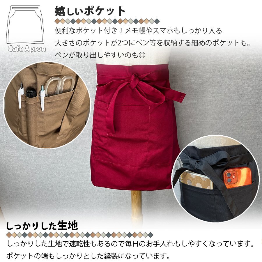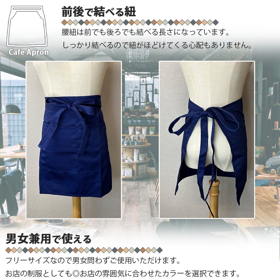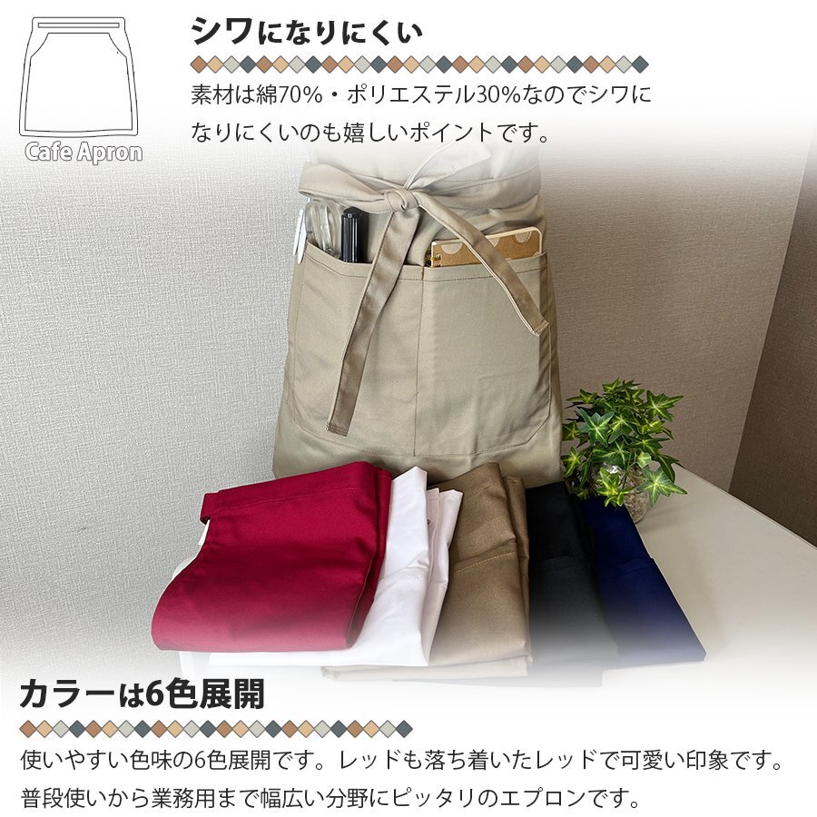 | ・オシャレなショート丈のカフェエプロン。 ・ショート丈なので身軽に動きたい方に!! ・メモ帳やスマホも入るポケット付き。ペン等の細めの物を入れるポケットも付いてます。 ・綿×ポリエステルでシワになりにくい!お手入れも簡単です。 ・ゆったりとした紐の長さで前・後ろどちらでも結ぶことができます。 ・選べる6色。カラーもオシャレなカラー揃いです。 ・飽きのこない無地のシンプルなデザイン。男女問わずご使用いただけます。 ・普段使いはもちろんカフェや飲食店など業務用としても◎ |