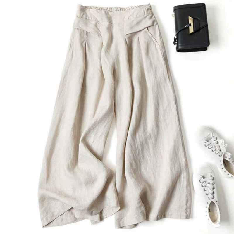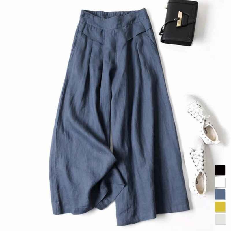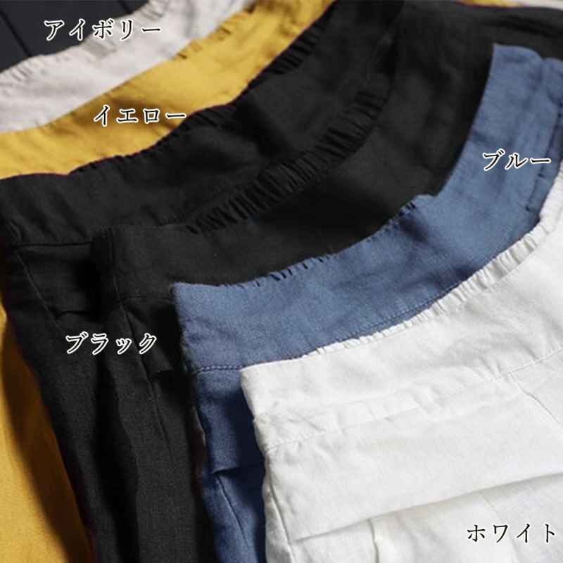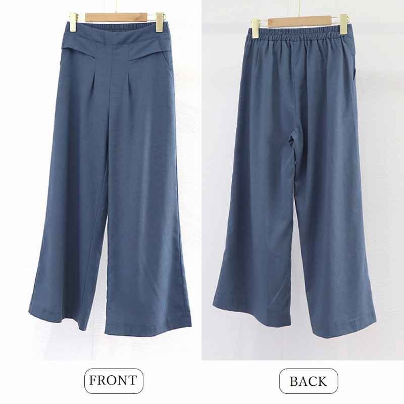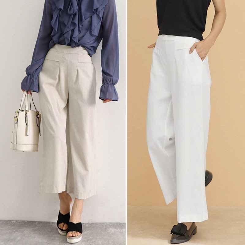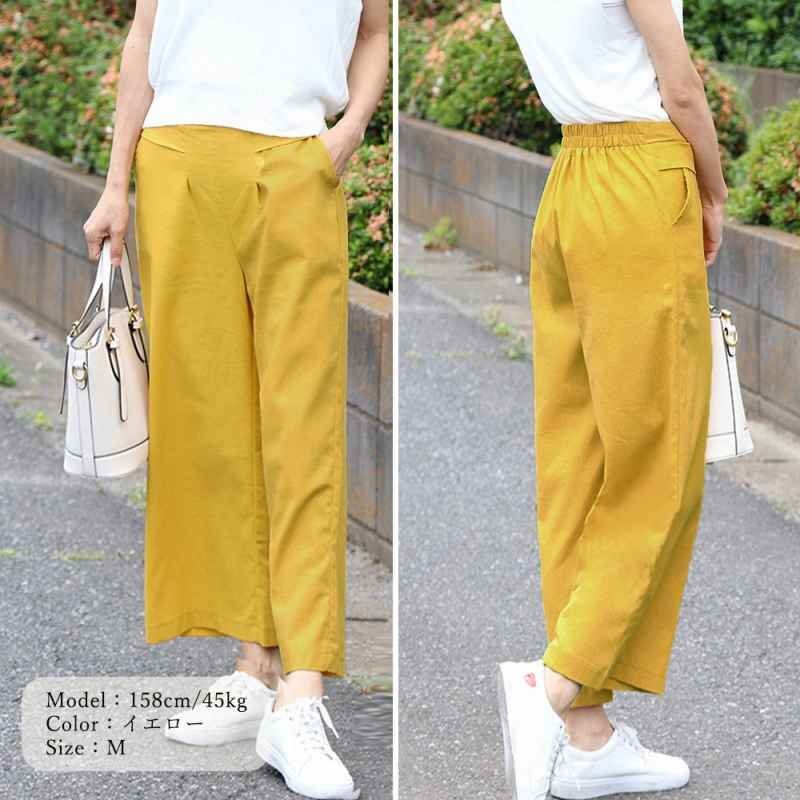 体型をカバーしながらもスタイリッシュな印象を与えるハイウエストデザインのワイドパンツです。ウエスト部分には伸縮性のあるゴムが使用されているため、履き心地が良く、脱ぎ着も簡単。