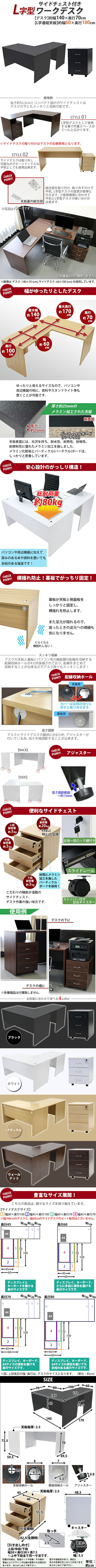 | 商品サイズ | ■本体寸法・・・L字型デスク:W約140×D約170×H約73.5(cm) サイドチェスト:W約40×D約48.5×H約55.5(cm) ■梱包寸法(3個口)・・・デスク:W約148×D約80×H約12(cm) サイドデスク:W約70×D約107×H約12(cm) サイドチェスト:W約47×D約56×H約52(cm) |