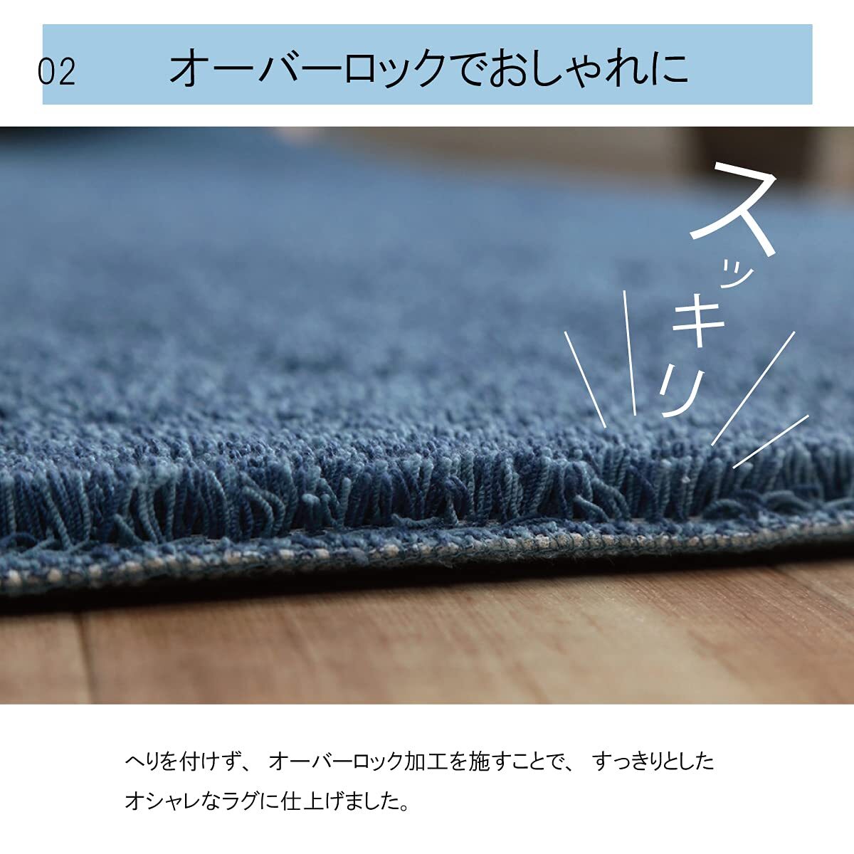 イケヒコ ラグ カーペット マット プリーム 約90×185cm ネイビー オールシーズン シンプル オーバーロック #3985489