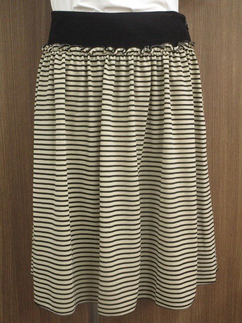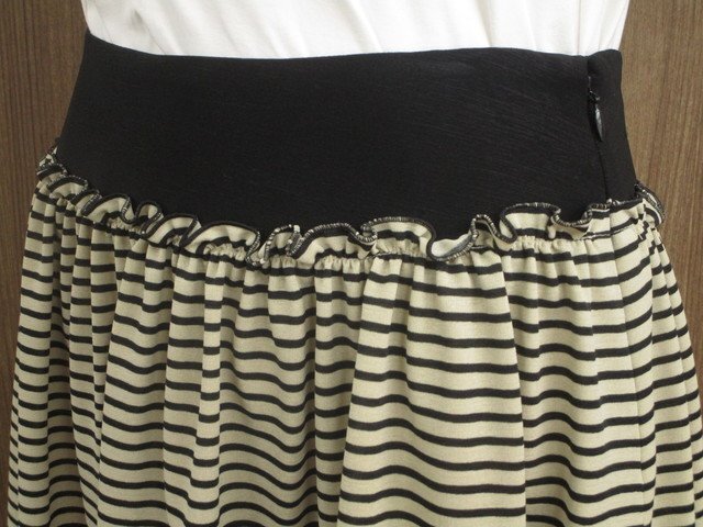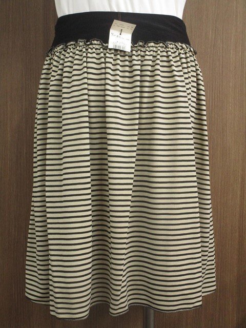 ひざ丈 フレアスカート 38 ベージュ×ブラック ボーダー柄 【メール便可】