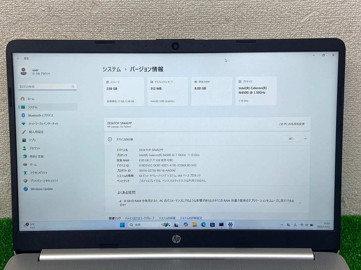 | HP 15S-FQ3XXX ノートPC INTEL CELERON N4500 ノートパソコン メモリ8GB SSD 256GB カメラ15.6フルHD LAPTOP 15S-FQ3033TU 管理番号:27259 | |