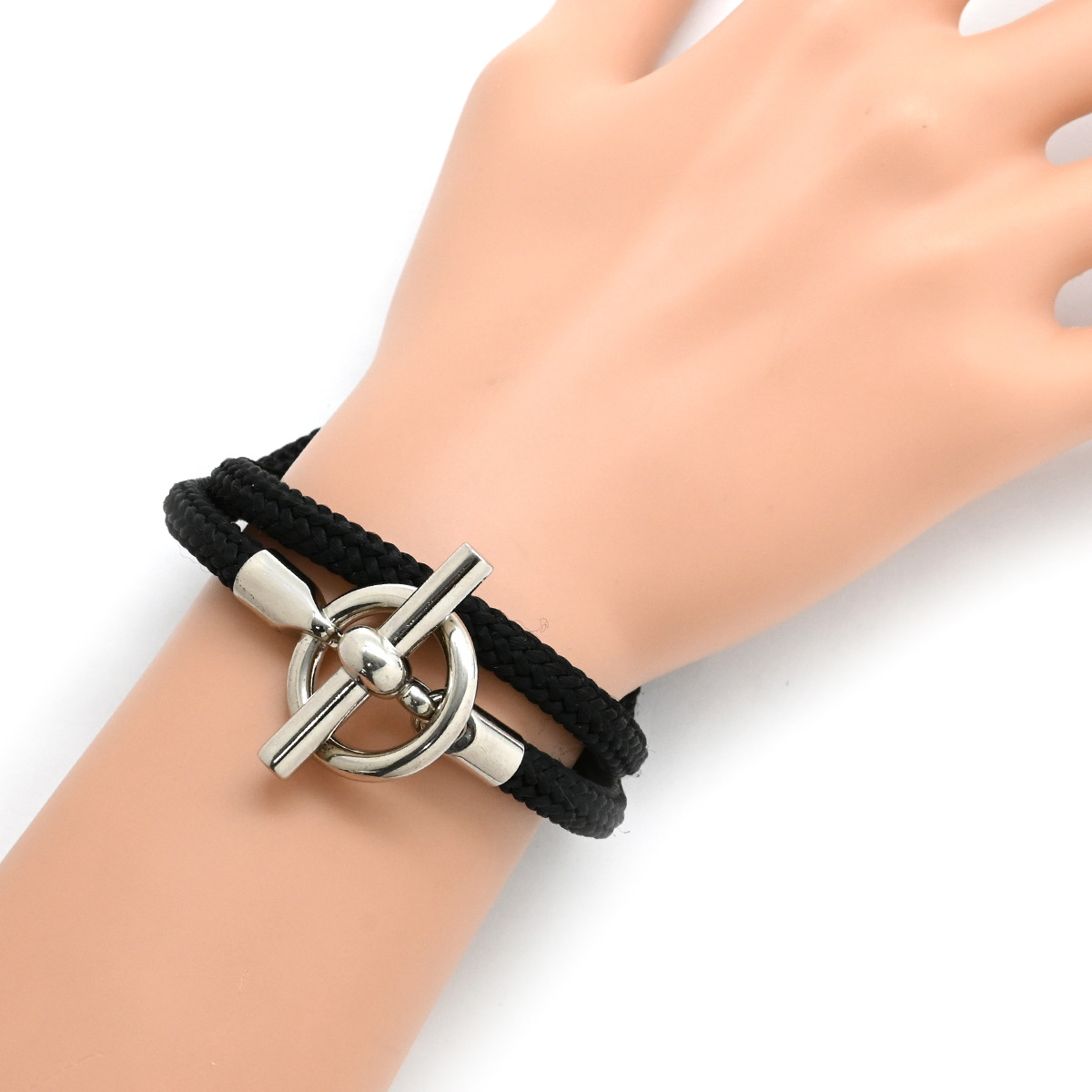 | エルメス HERMES グレナン ドゥブルトゥール グレナン ブレスレット ヴォースイフト メタル ブラック 黒 シルバー金具 レディース 【保存袋】定番 人気 美品 | |