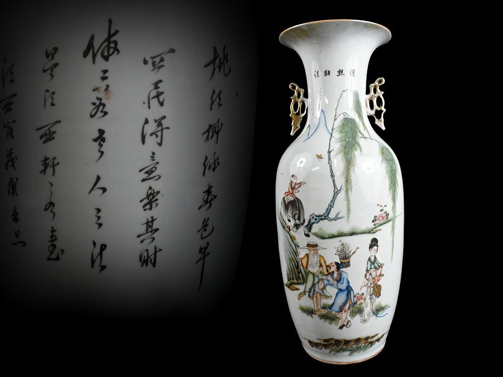 | 商品名 | 【雲】某資産家委託品 中国古玩 唐物 色絵人物漢詩絵付耳付大花瓶 飾壺 高さ58.5cm 古美術品(花器花入)DJ902 UTxvgfp |
