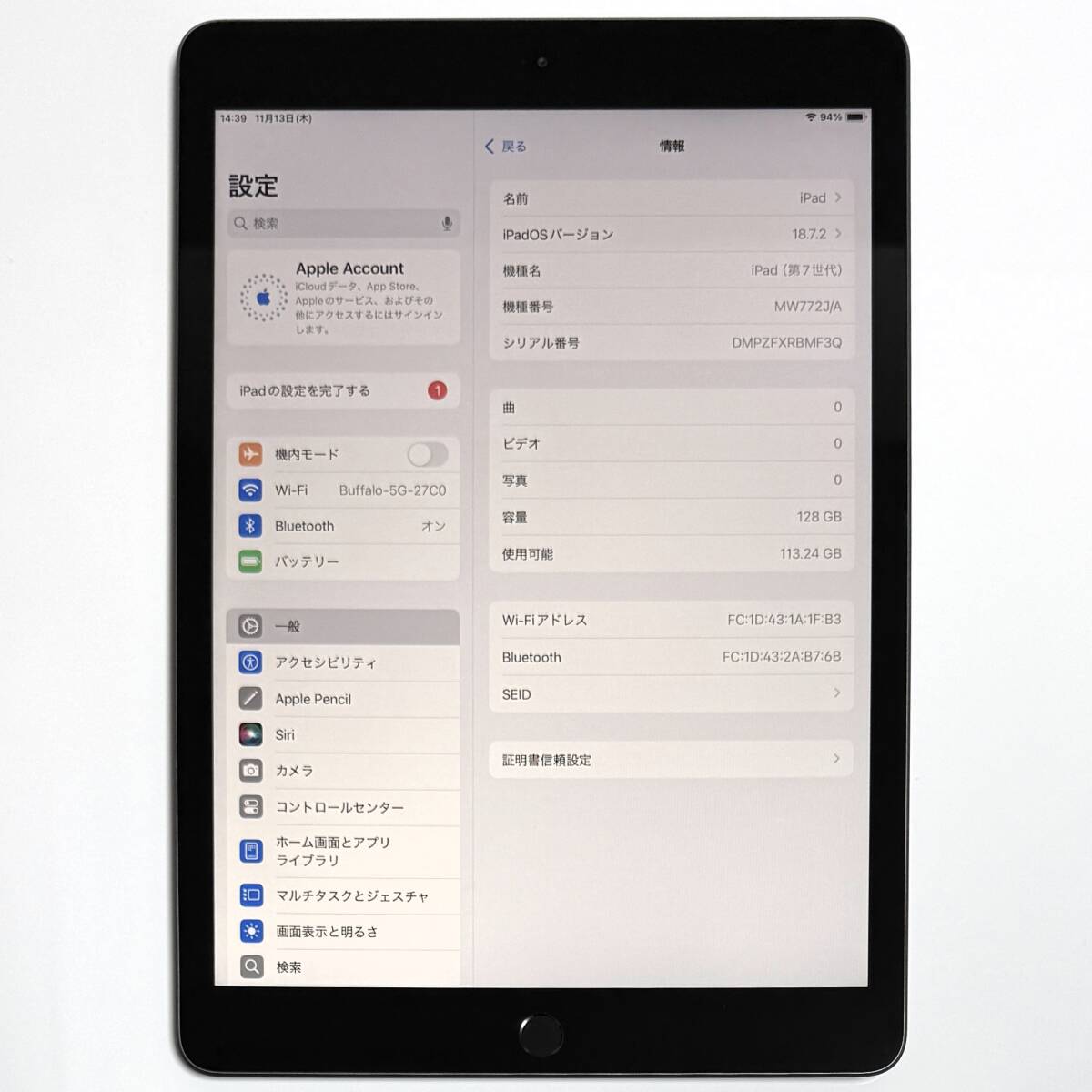 | 商品説明 | インボイス(領収書)の発行が可能でございます。 事業者登録番号 T8810656303714 ご要望の場合は商品の落札後に取引メッセージよりお申しつけくださいませ。 ●商品の状態 ※iPad (第7世代) (10.2インチ) スペースグレイ 128GB MW772J/A ※モデル:A2197 ※iOSバージョン:18.7.2 ※シリアル番号:DMPZFXRBMF3Q ※バッテリーの状態:最大容量90% (充放電回数243回) iMazingソフトにて計測 (参考程度とお考えください。) ※アクティベーションロックは解除されている状態です。 ※iCloudアカウントはサインアウトしていますのでご安心くださいませ。 ※データは初期化済みでございます。 タッチパネルはApple純正ですのでTure Toneの使用が可能でございます。 前後カメラ及びスイッチとボタン類タッチパネルの作動状態は良好です。 基本動作は全て問題ないことを確認しております。 商品状態ランク:C iPad本体は使用感がある状態です。 タッチパネルに傷はございませんが(塵?)があります。 (状態が写真に上手く写りませんでした。) フレームに使用感があり一部に僅かな反りがございます。 バックパネルの上部の一部に刻印がありヘコミなどの使用感があります。 iPad本体以外の付属品は欠品しております。 状態ランク S:新品未使用品 A:ほとんど傷がなく良い状態 B:多少の使用感がありますが比較的きれいな状態 C:目立つ傷ダメージ汚れなどがある状態 D:非常に目立つ傷ダメージ汚れなどがある状態 ●出品している商品について 私以外の方が使用しておりました商品を出品させていただいておりますので 修理歴、修復歴、部品交換歴がある可能性があり 保証による交換品または店頭展示品(デモ機)である可能性もございます。 商品説明にはなるべく正確な状態をお伝えするべく点検をしておりますが 記載するべき事項を見落としている可能性がある場合がございます。 商品の状態の表現につきましては相違及び記載漏れなどがある場合がございます。 商品の状態の表現の相違につきましては一切の対応をいたしかねます。 ボタン類及びカメラその他タッチパネルなどは経年劣化がある事をご理解願います。 カメラの劣化による内部の塵の映り込みは判別が難しいため一切の保証をいたしかねます。 スピーカーとマイクの音の出入力の経年劣化につきましても保証をいたしかねます。 ご使用時のバッテリーのパフォーマンスにつきましては保証いたしかねます。 バッテリーの容量低下による不具合等は一切の対応をいたしかねます。 Apple公式以外のお店で修理や点検などをされた場合は一切の保証をいたしかねます。 ご自身で部品の交換または分解などをされた場合も一切の保証をいたしかねます。 上記に記載をさせていただいております事項以外の初期不良につきましては 中古品につき商品のお届け後から7日以内のみ対応をさせていただきます。 商品説明と著しい相違があった場合を除きまして ノークレームおよびノーリターンでのお取引をお願いいたします。 |