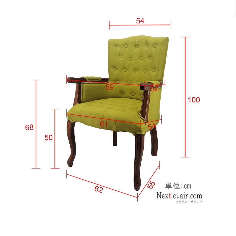 スタイリッシュかつ高級感あるのアンティーク風のサロンアームチェア。