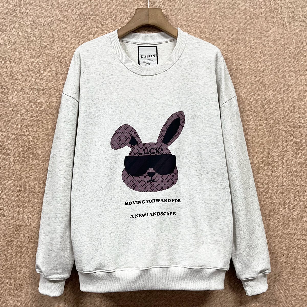 高級ヨーロッパ製※定価4万◆ブルガリア発※RISELIN トレーナー 綿100% 柔らか 快適 スウェット トップス ラビット柄 個性 日常 秋 XL/50サイズ