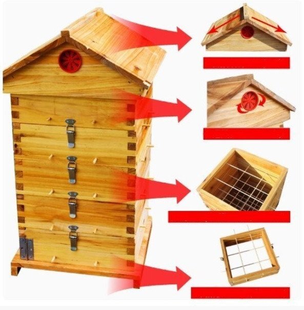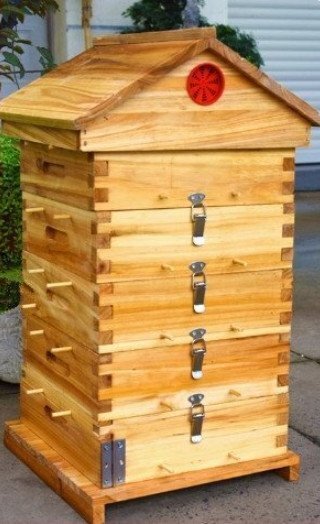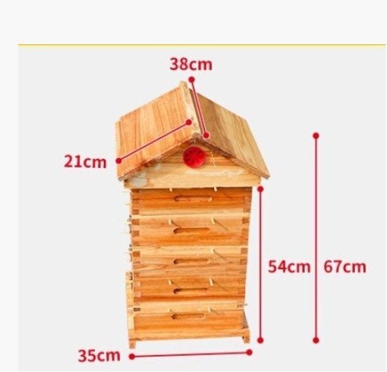 5階 蜜蜂巣箱 ミツバチ 巣箱 重箱式 養蜂箱 杉材 蜂ハイブ 格子箱 煮蝋 蜜蜂飼育箱 巣枠不要 自然造蜜 防水性と防食性5窓 (A158)