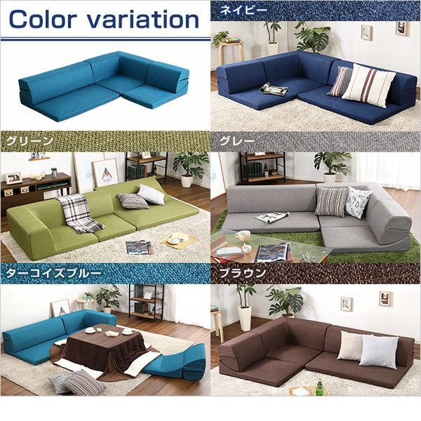 【ポイント】 こたつやローテーブルにピッタリな日本製コーナーローソファです。 3つのパーツを自由に組み替え可能です。 1P、2Pの背もたれを倒せば、横になるのにちょうどいい角度に! ファブリックの落ち着いた5カラーがございます。 |