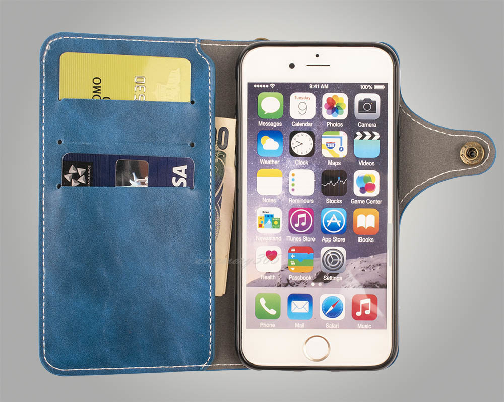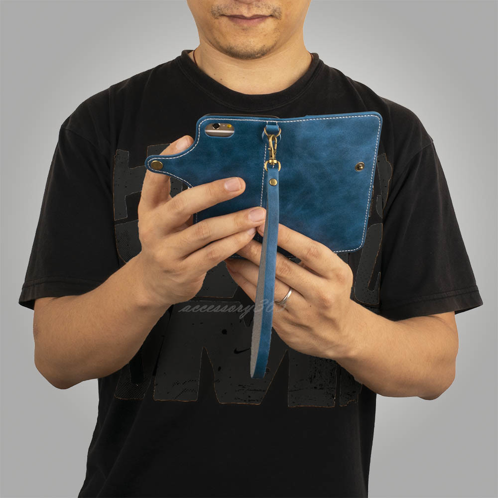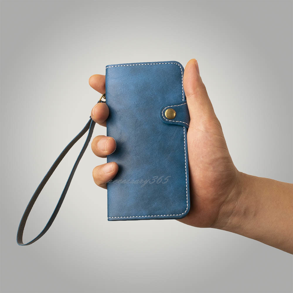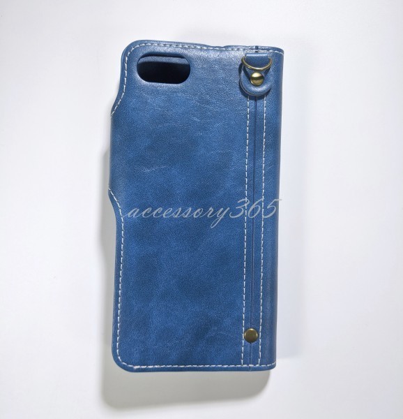 iPhone SE ケース 手帳型 iPhone8 ケース iPhone7 iPhone6s iPhone6 ストラップ ブルー 青 ケース 無地 シンプル レザー ボタン式 おしゃれ