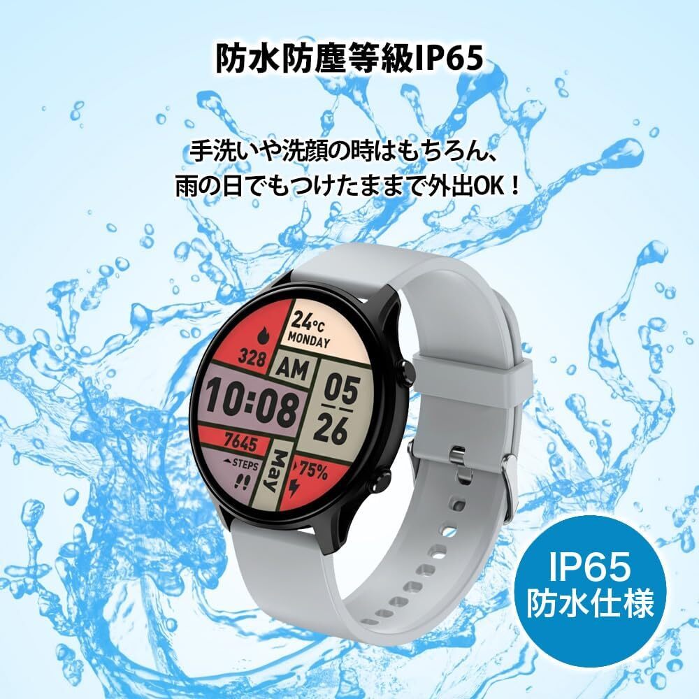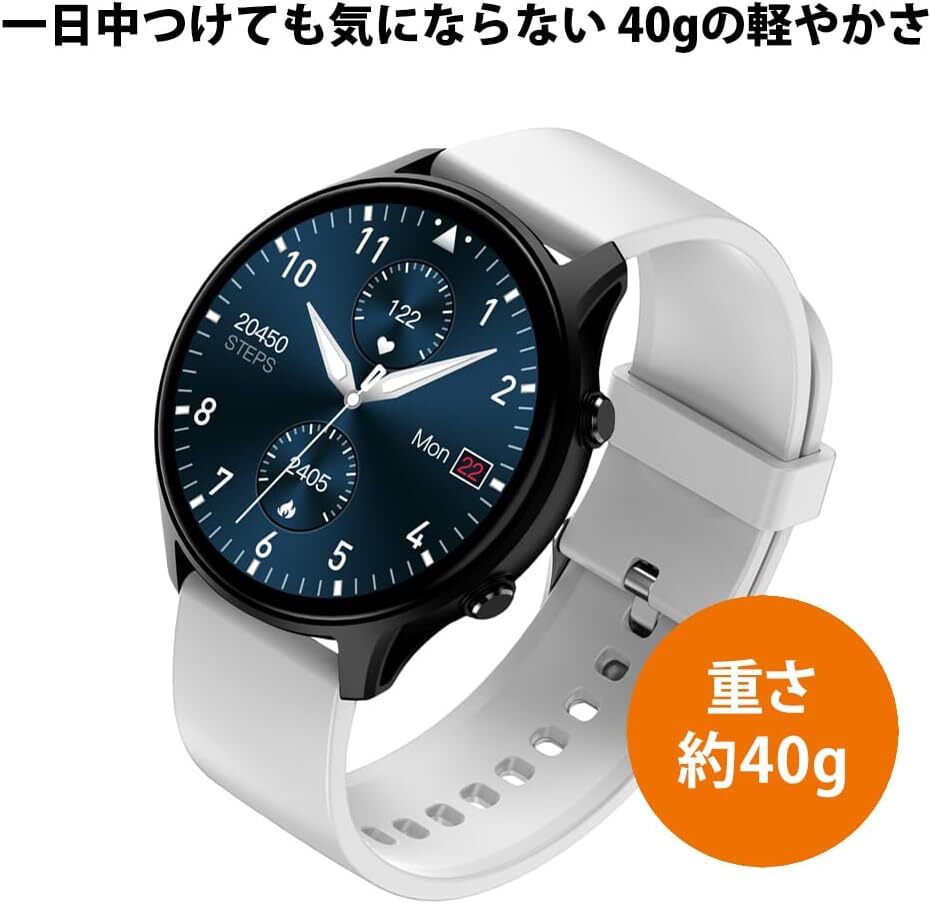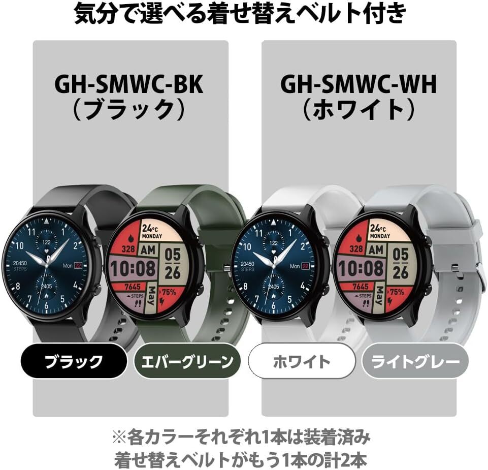 ホワイト色 スマートウォッチ グリーンハウス スマートウォッチ フルタッチディスプレイ 着せ替えベルト付き